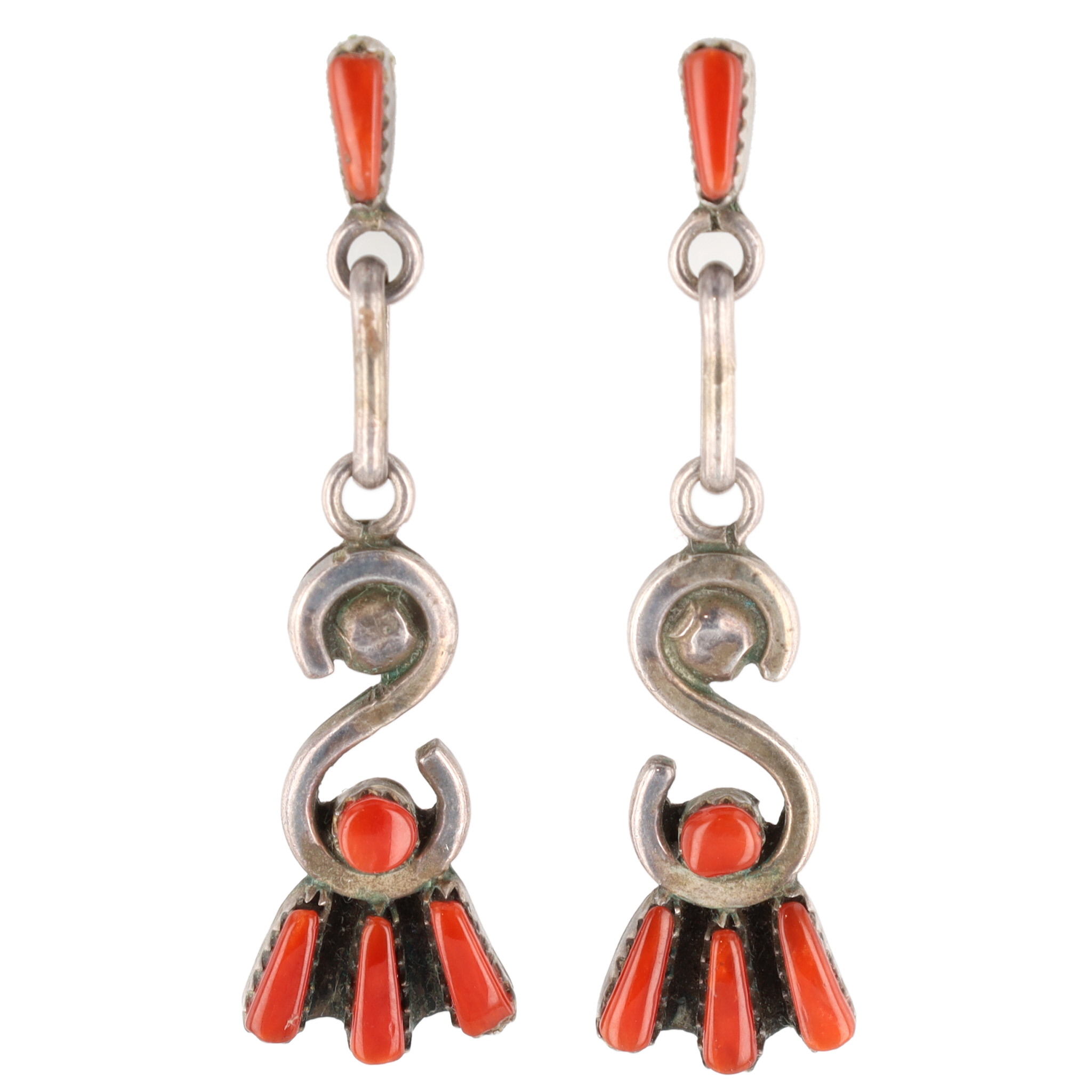 Carlene Hattie Zuni Sterling Coral Earrings 3.5g