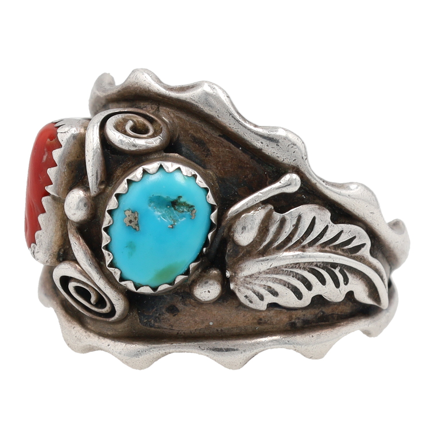 Signed LH Navajo Sterling Multi Stone Ring Sz. 11.5, 8g