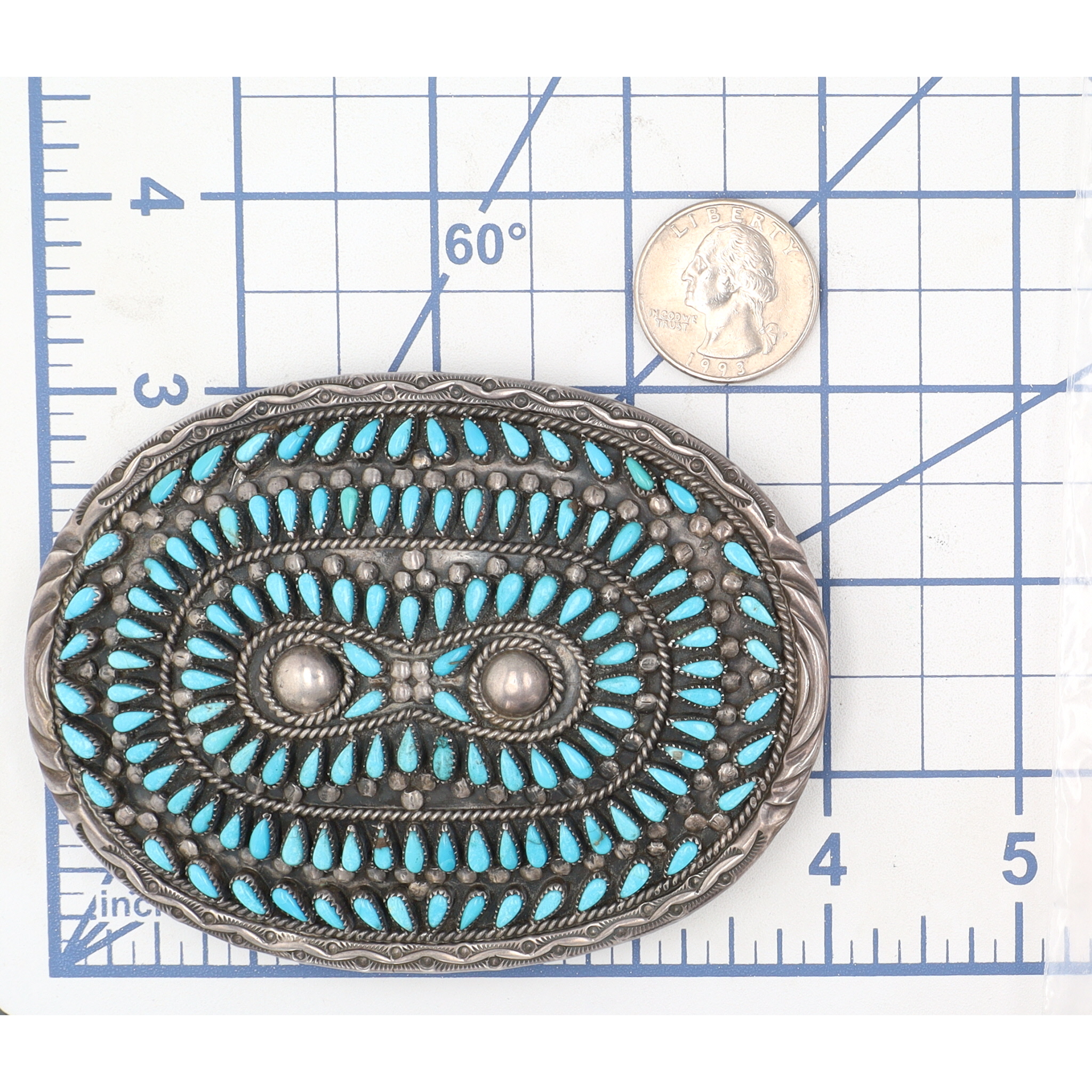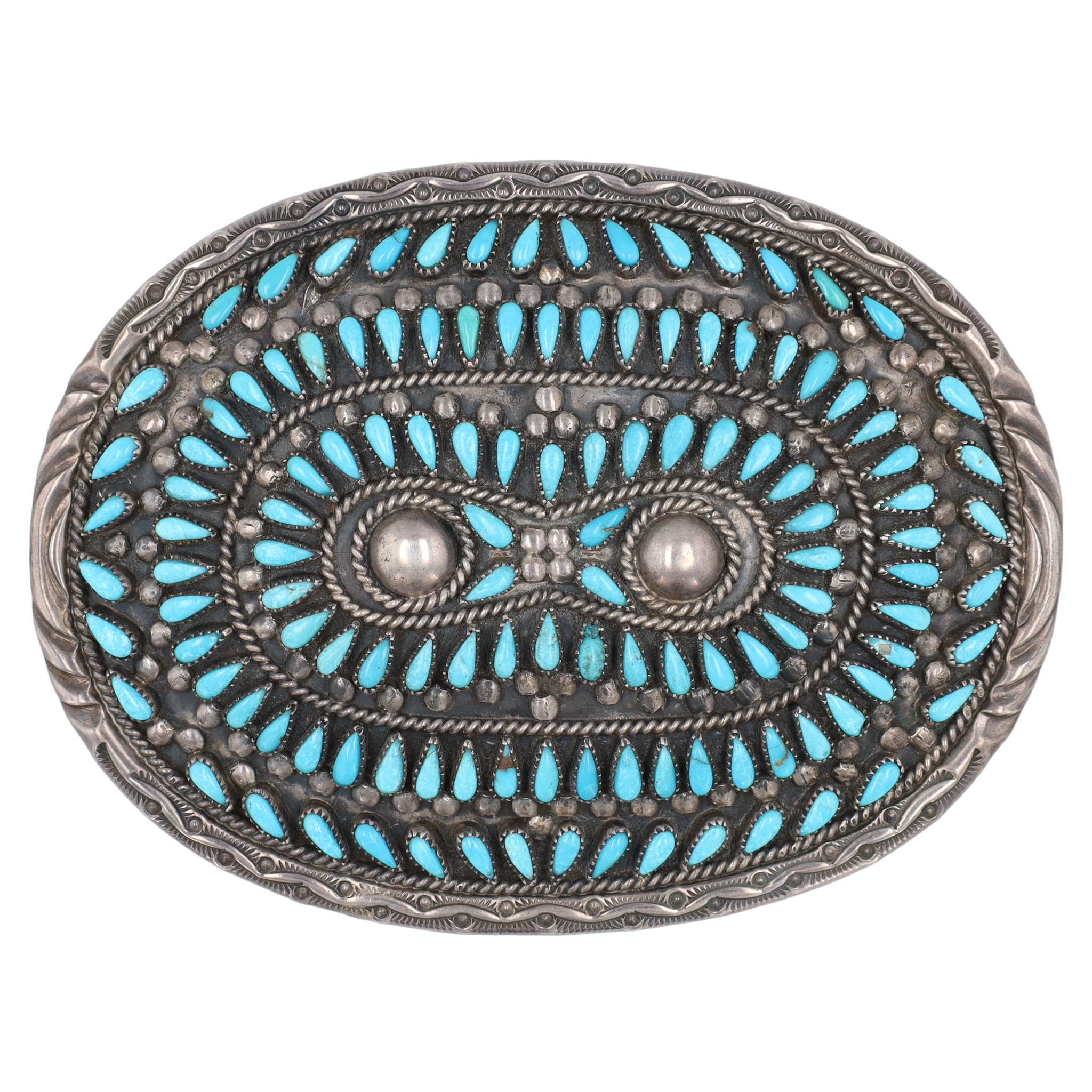 Francis M. Begay Navajo Sterling Petit Point Turquoise Cluster Belt Buckle 96g