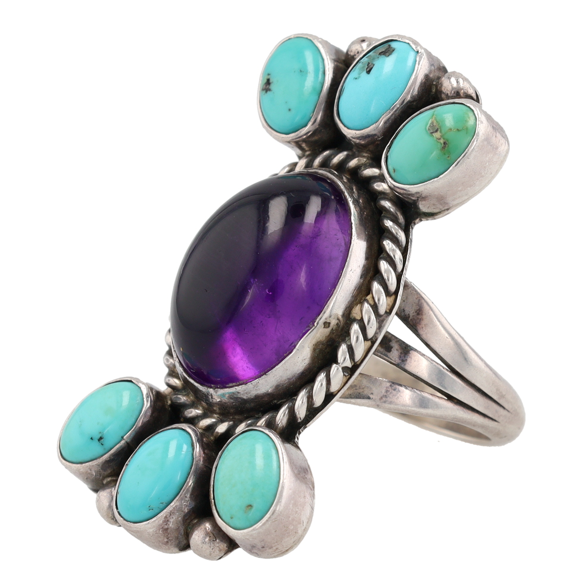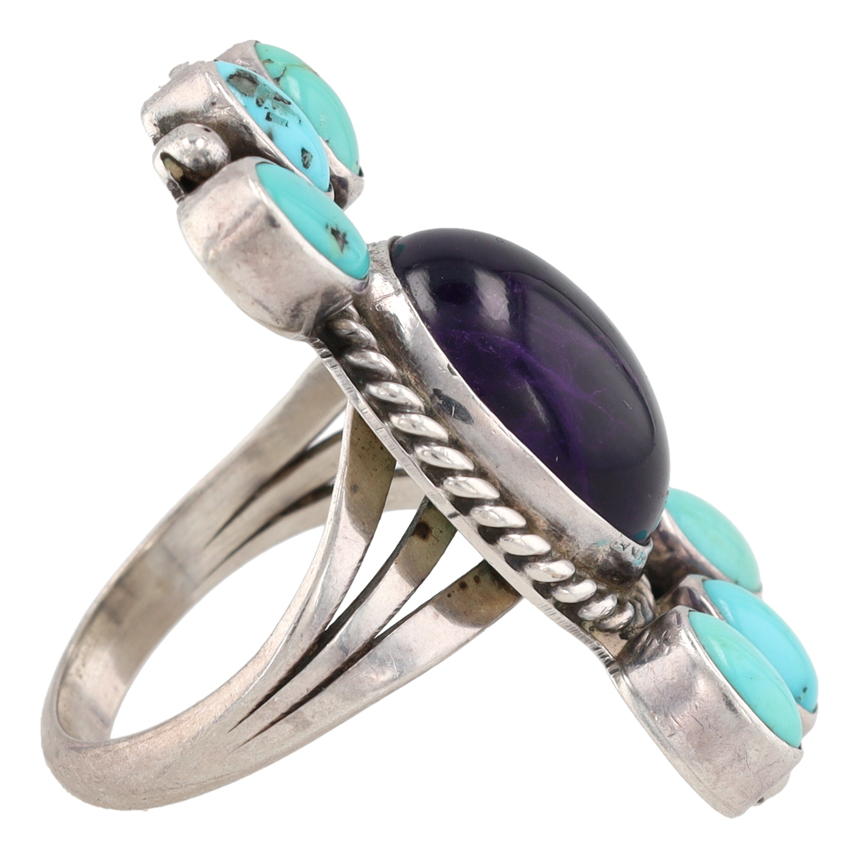 Vintage Navajo Sterling Multi Stone Ring Sz. 6.5, 11g