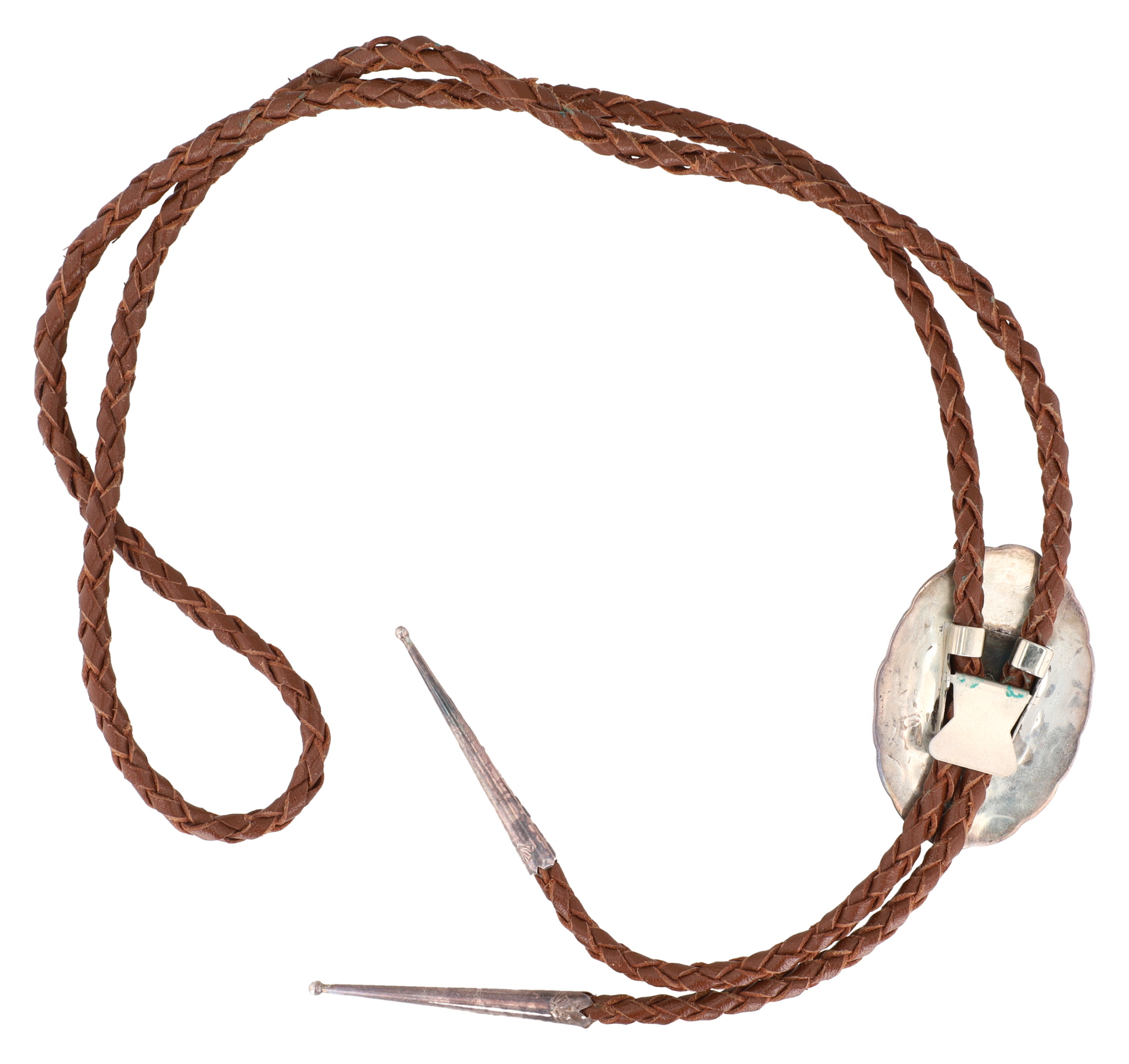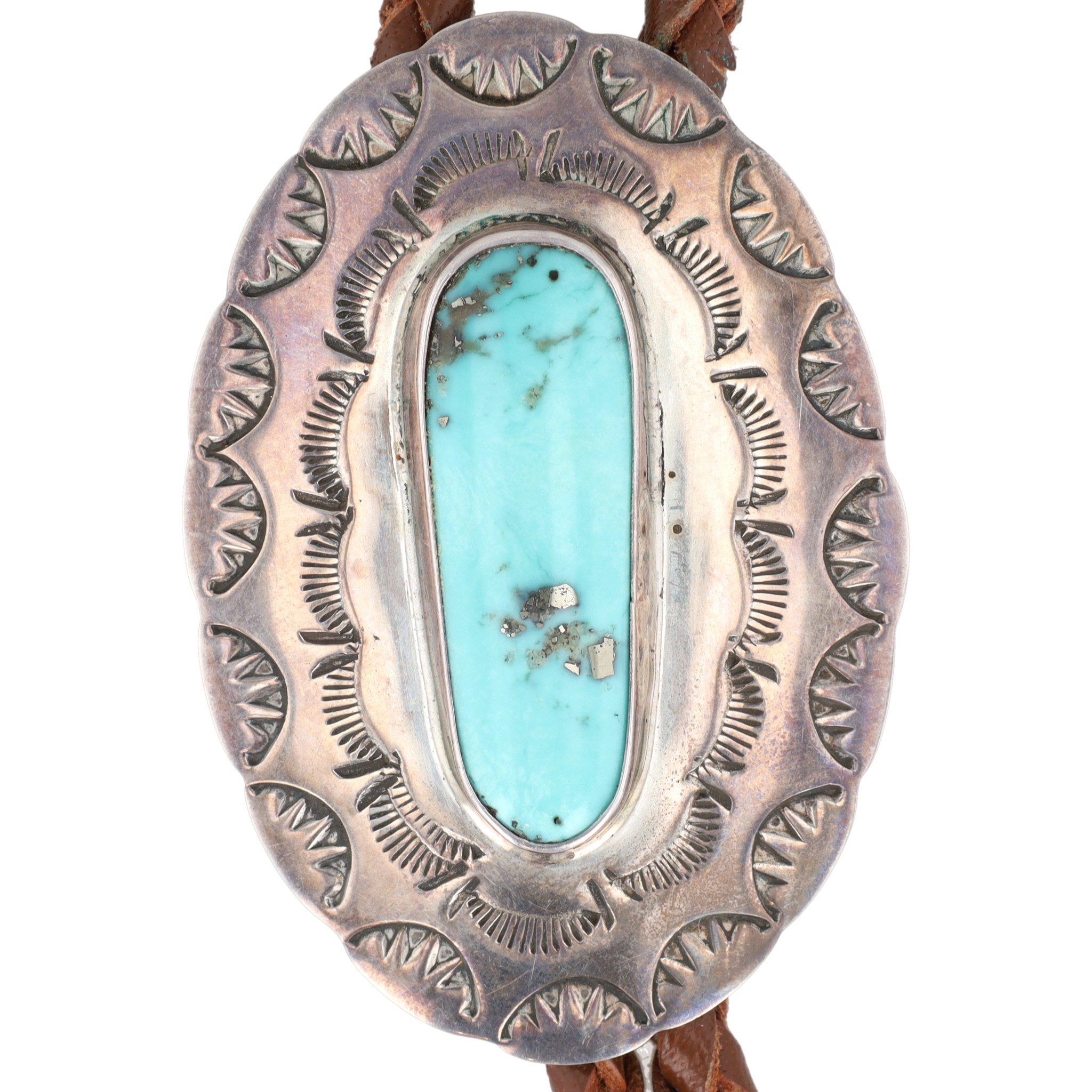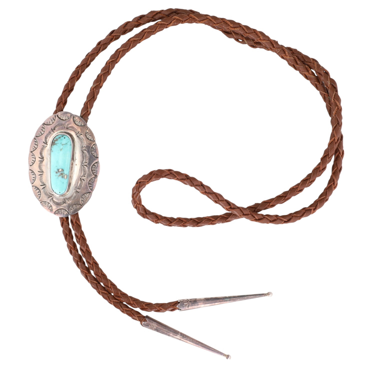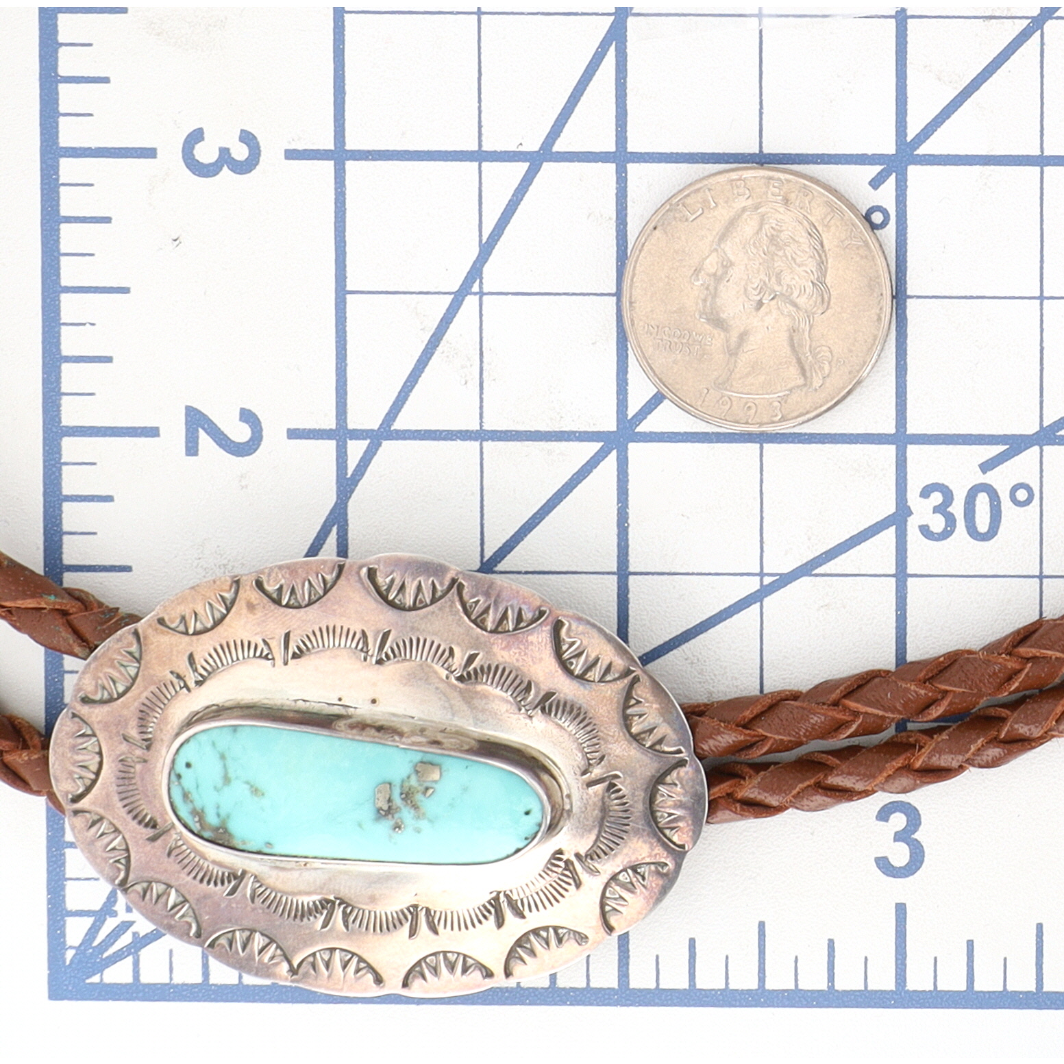 Signed Navajo Sterling Turquoise Bolo Tie 36g