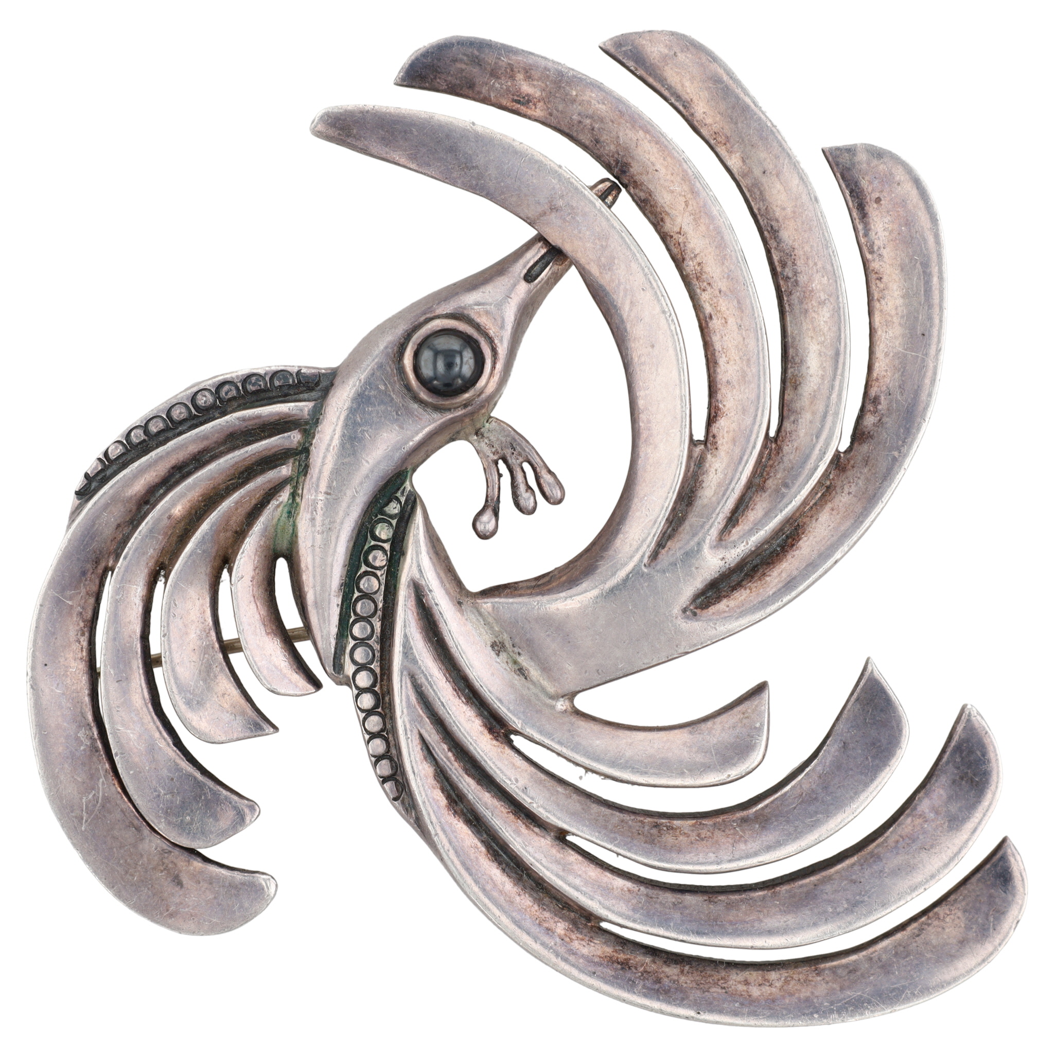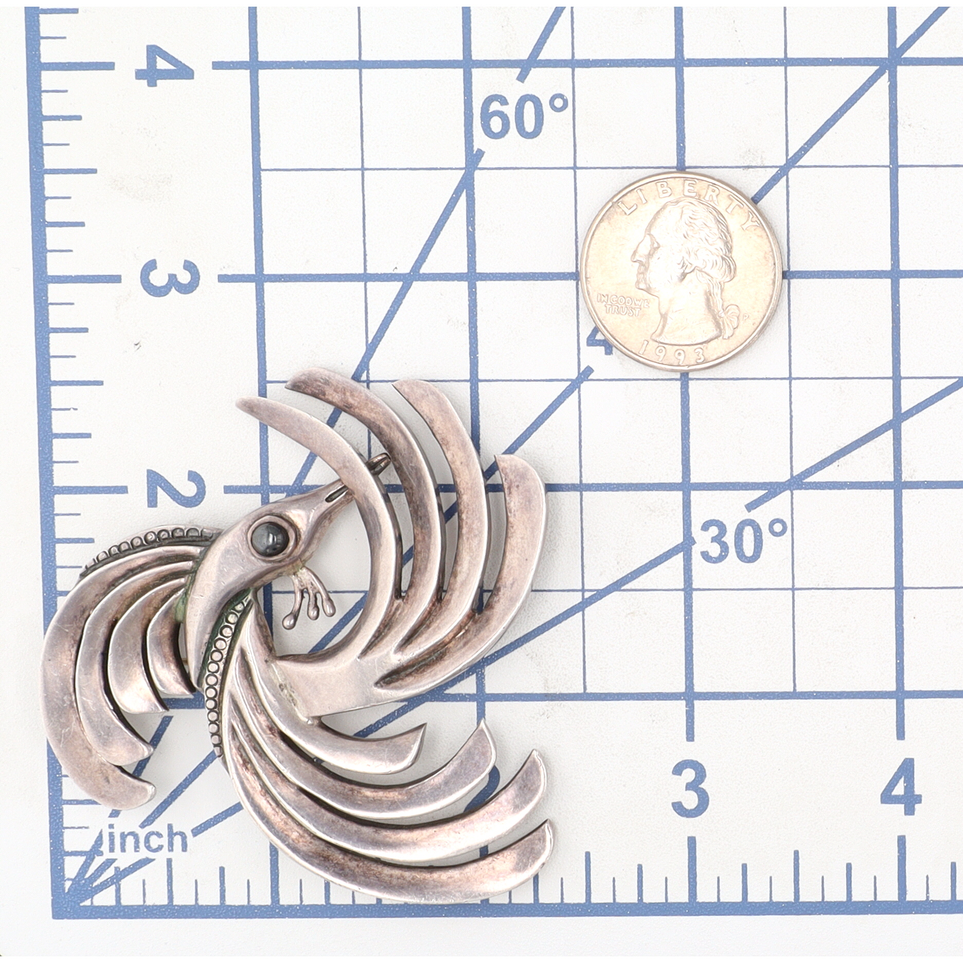 Antonio Pineda Taxco 970 Silver Onyx Bird Brooch 45g