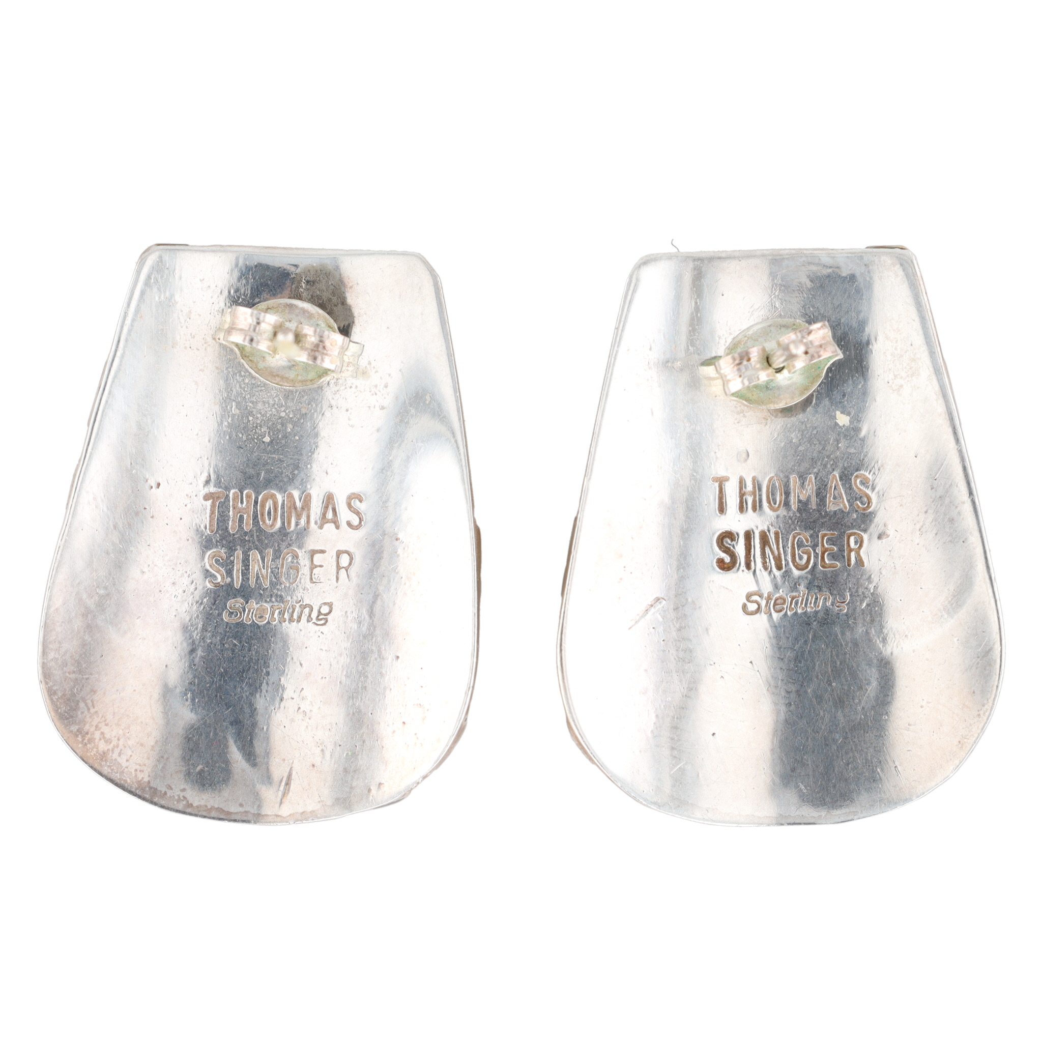 Thomas Singer Navajo Sterling Overlay Earrings 9g