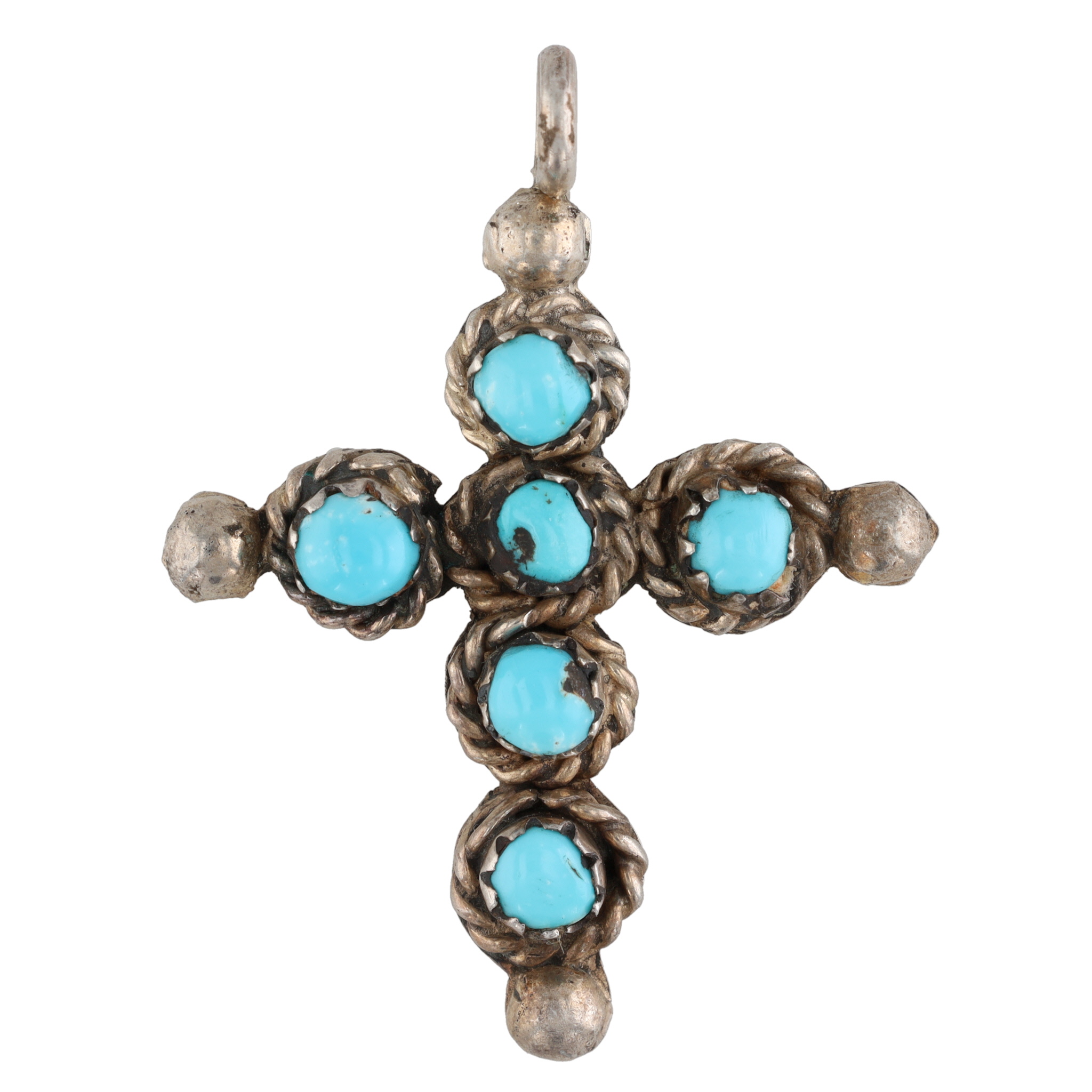 Vintage Navajo Sterling Turquoise Cross Pendant 5.5g