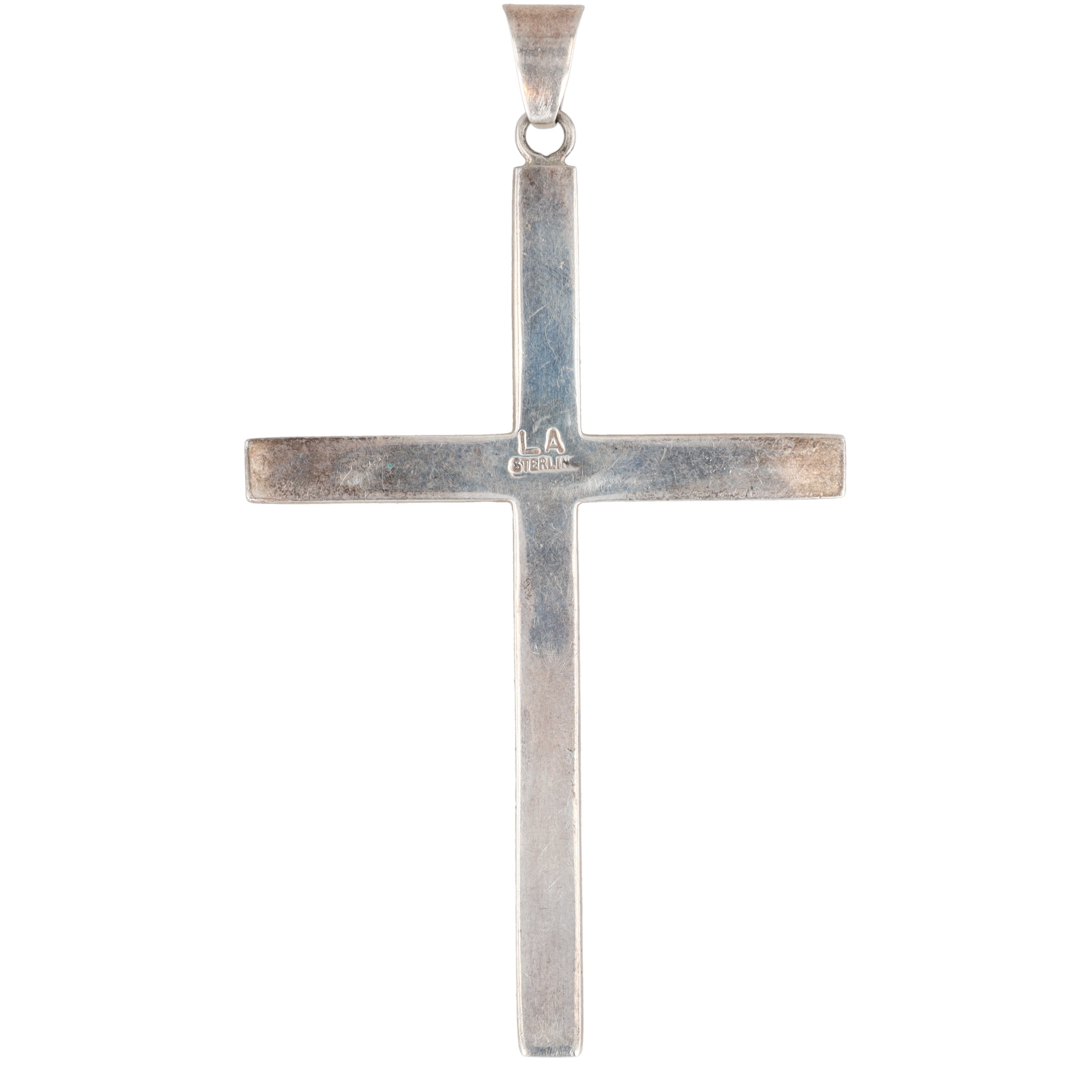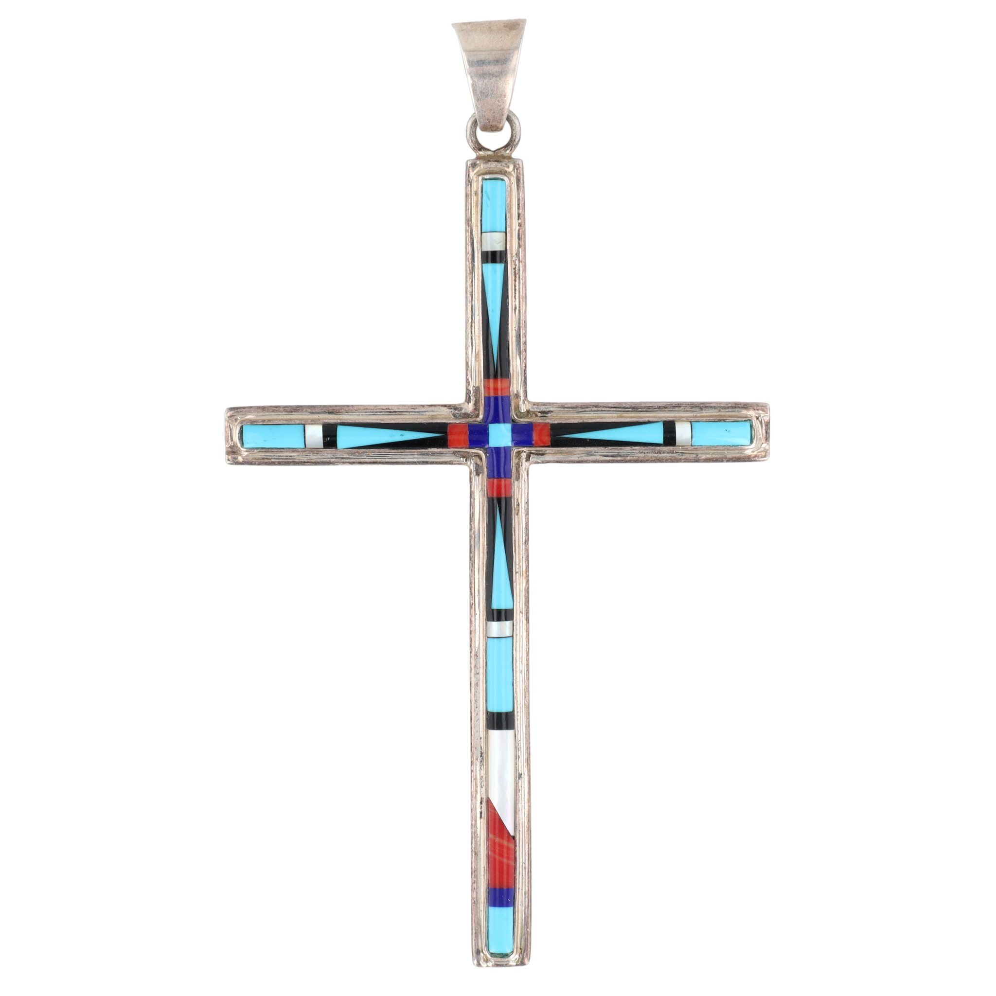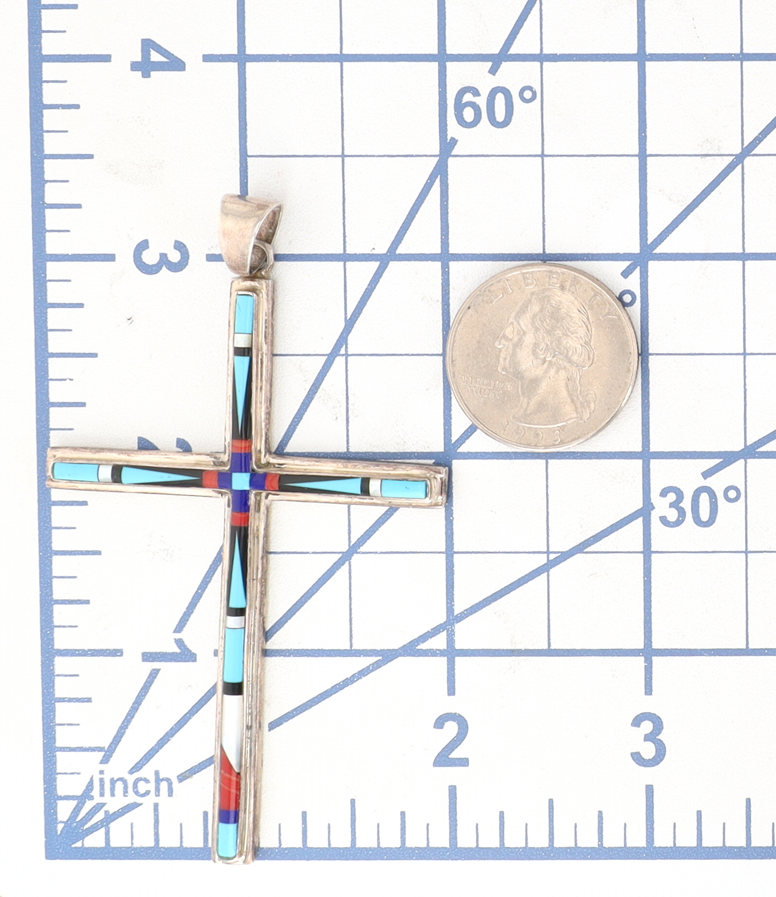 Len Adakai Navajo Sterling Multi Stone Inlay Cross Pendant 11g
