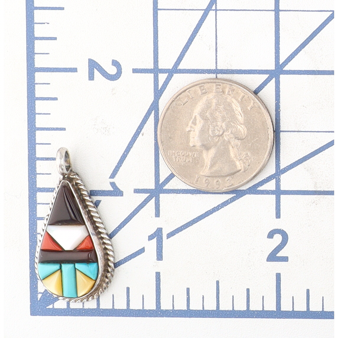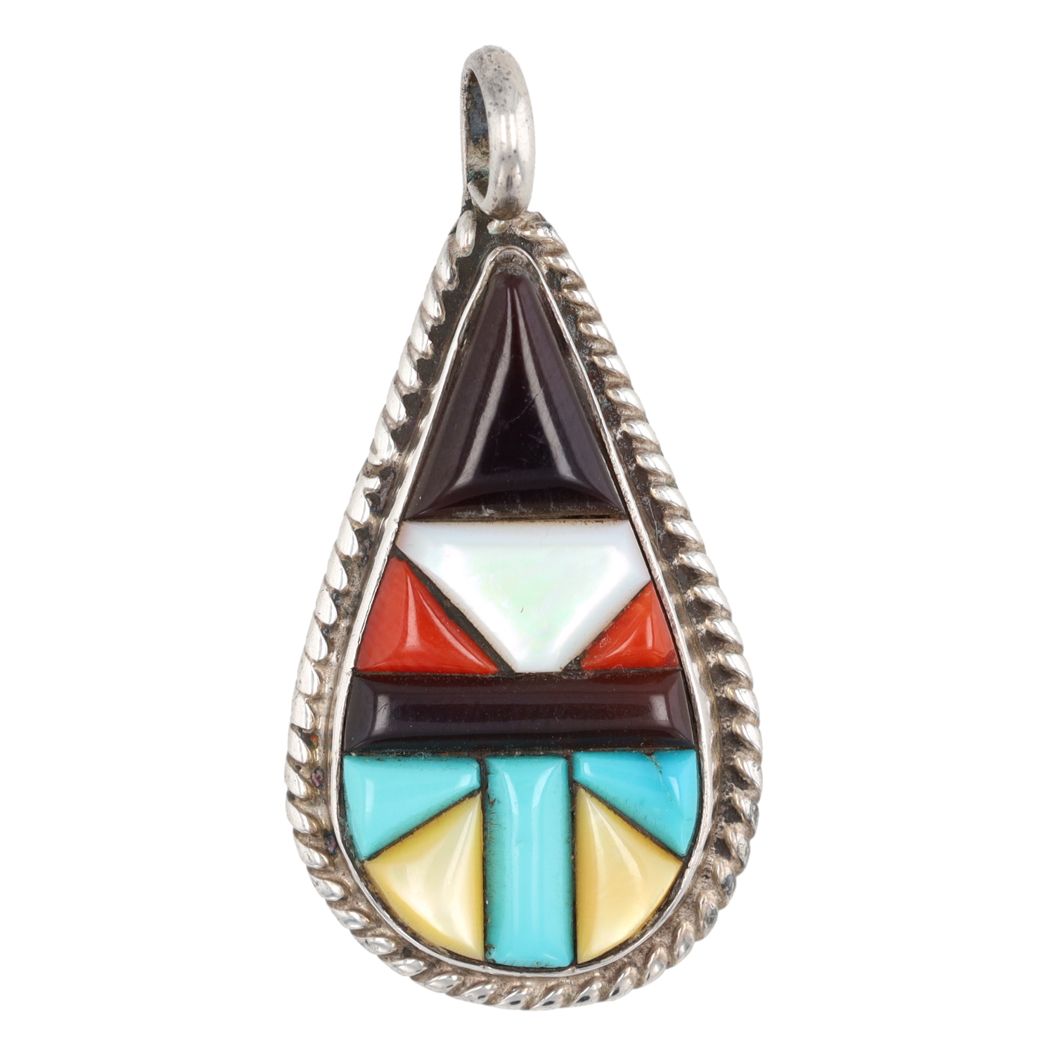 Vintage Navajo Sterling Cobblestone Inlay Pendant 4.5g