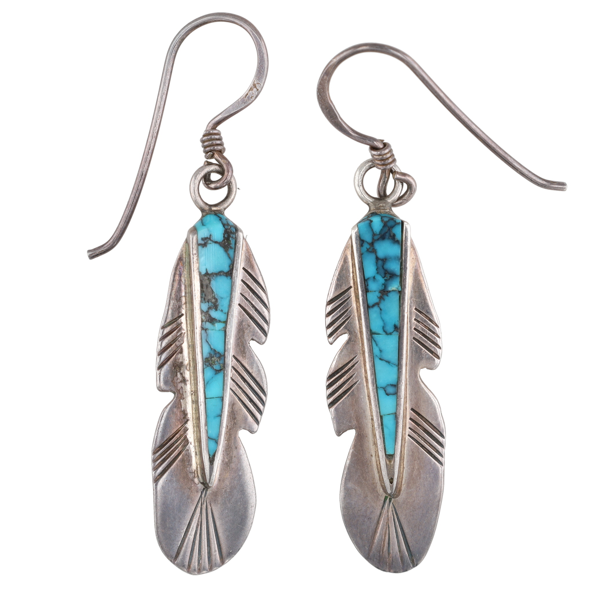 Vintage Navajo Sterling Turquoise Inlay Earrings 4.5g