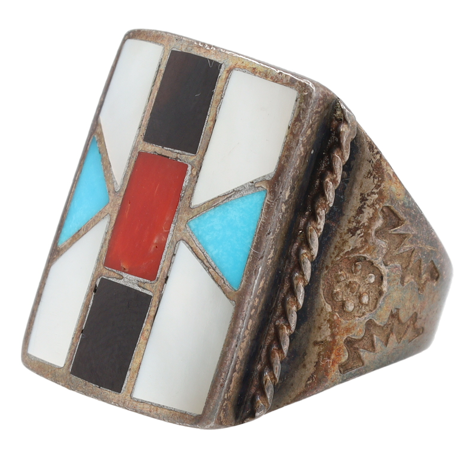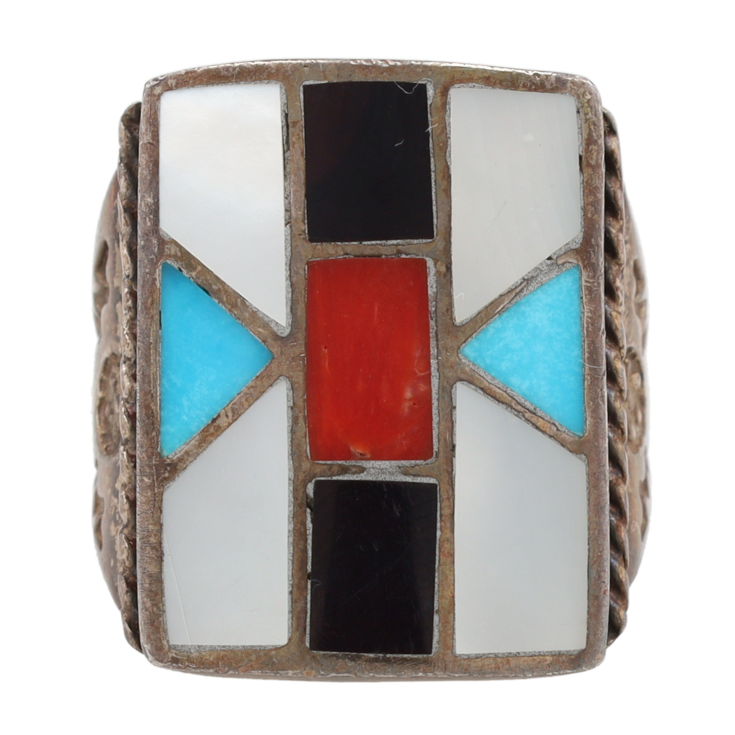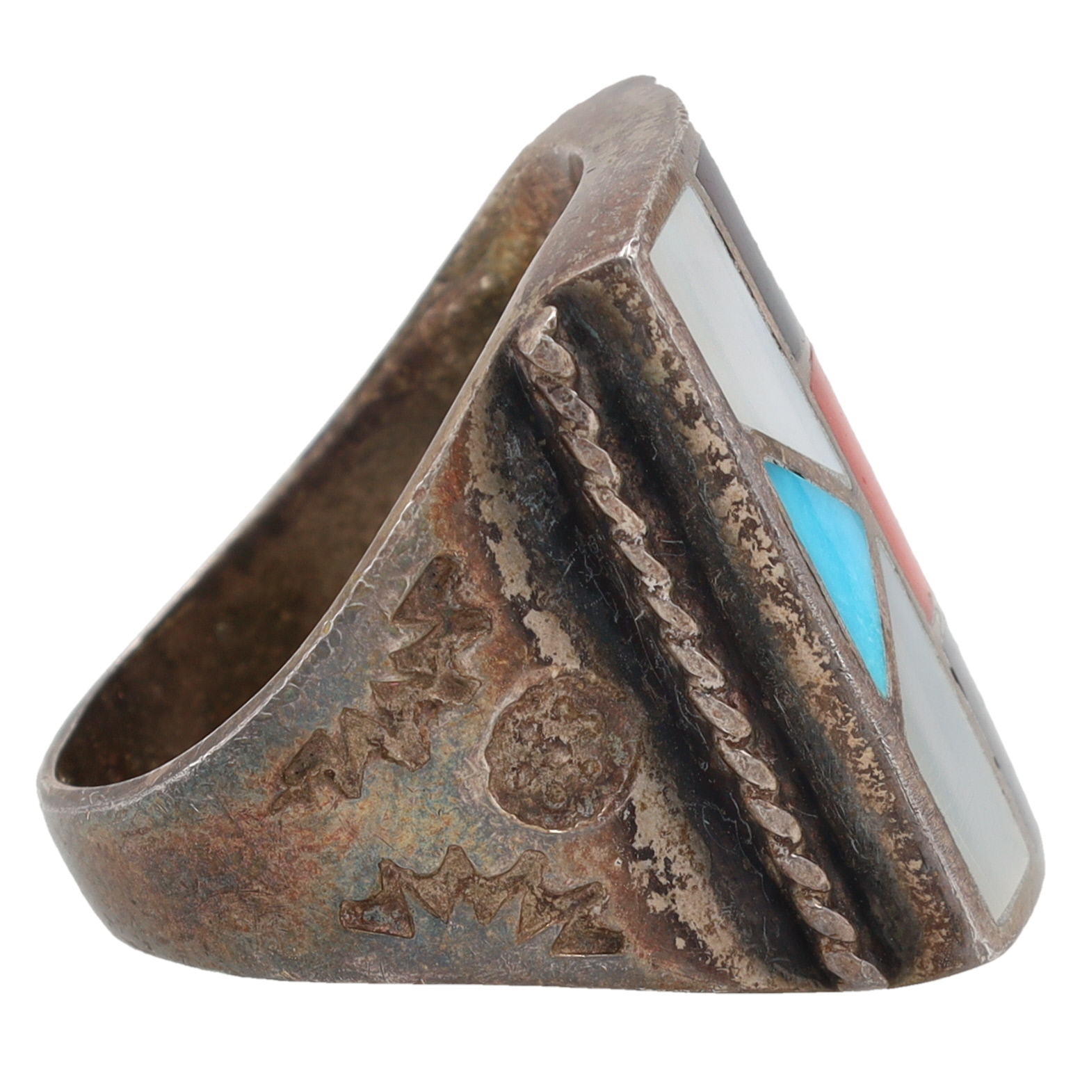 Vintage Navajo Sterling Multi Stone Inlay Ring Sz. 9.5, 15g