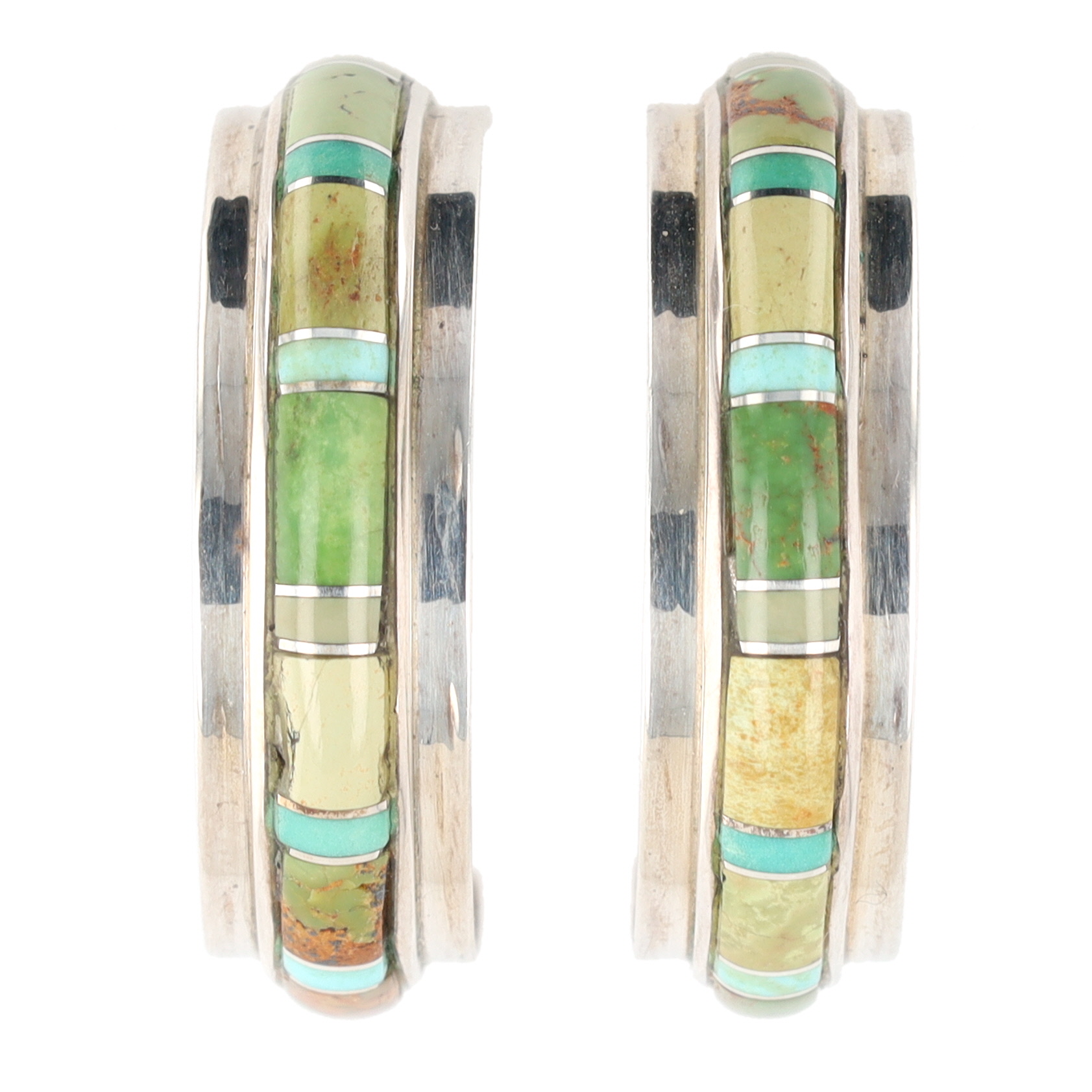 Donald Douglas Navajo Sterling Multi Stone Inlay Earrings 6g