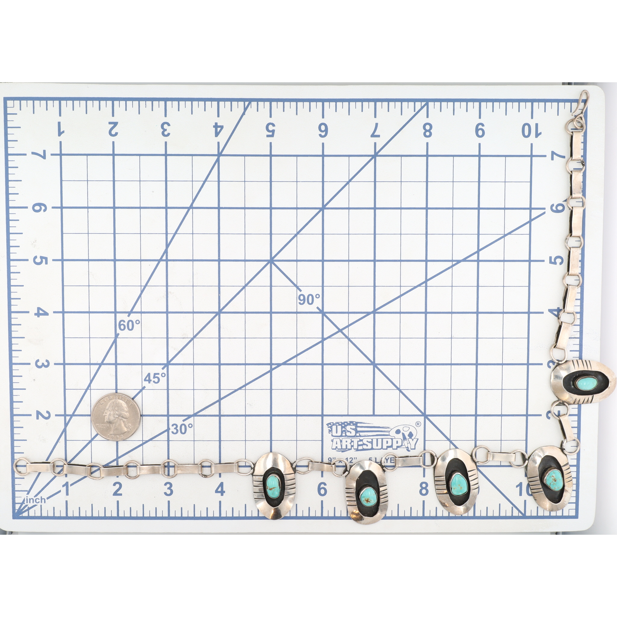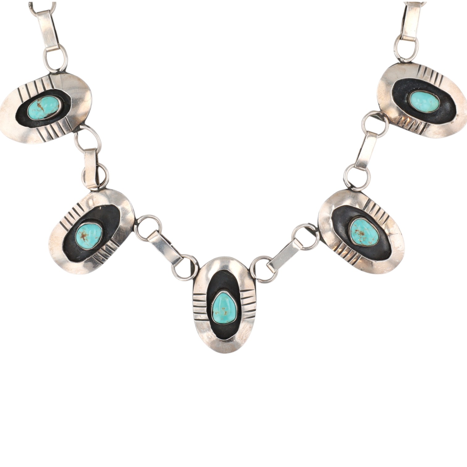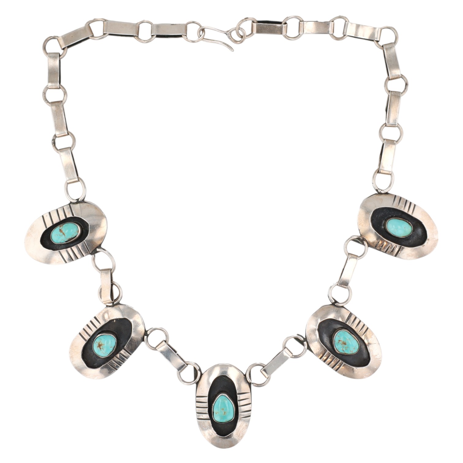 Vintage Navajo Sterling Shadow Box Turquoise Necklace 53.5g