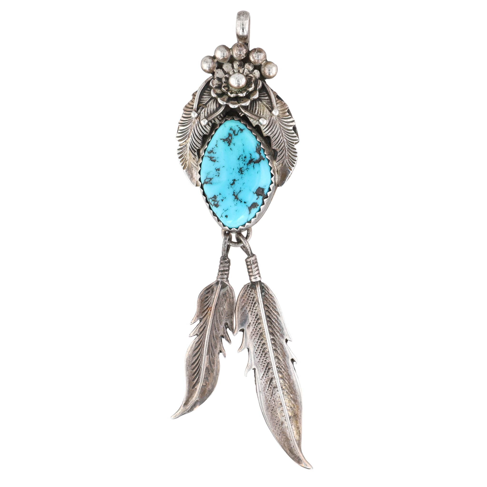 Vintage Navajo Sterling Turquoise Dangle Pendant