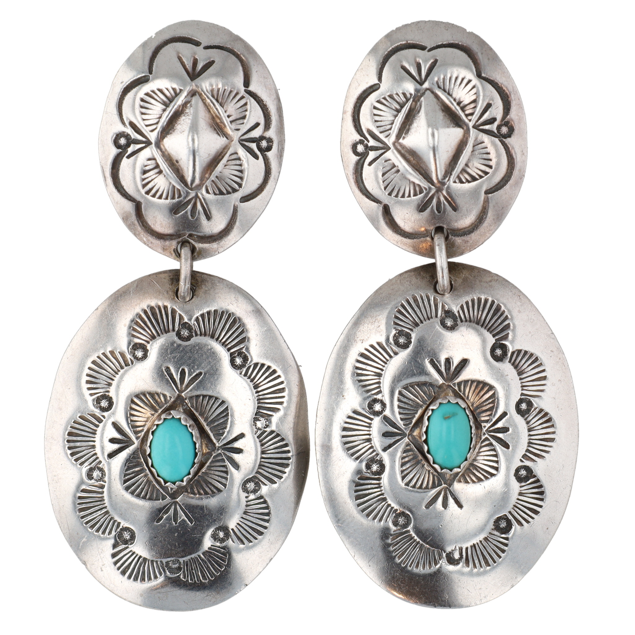 Ben Shiley Navajo Sterling Turquoise Concho Earrings 11g