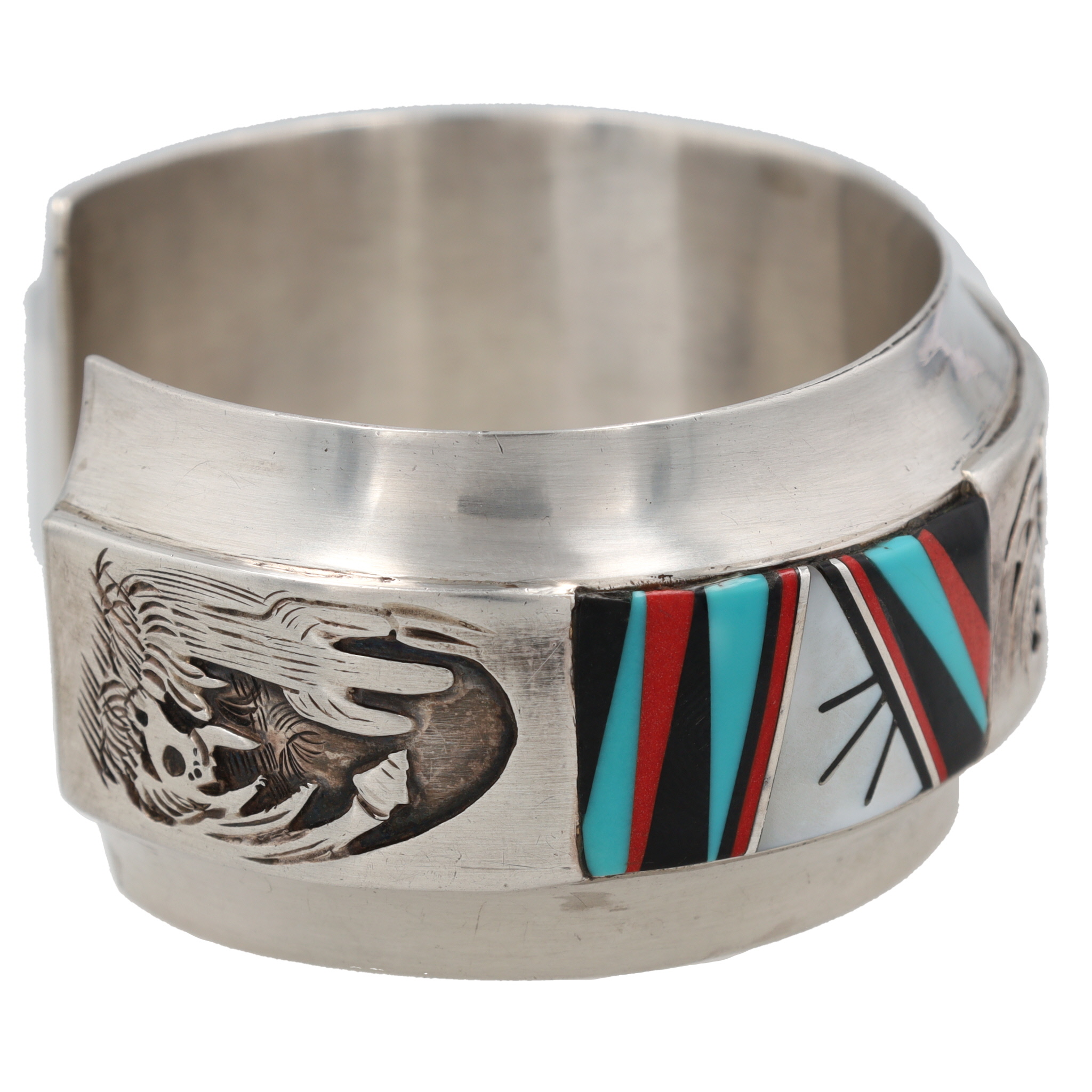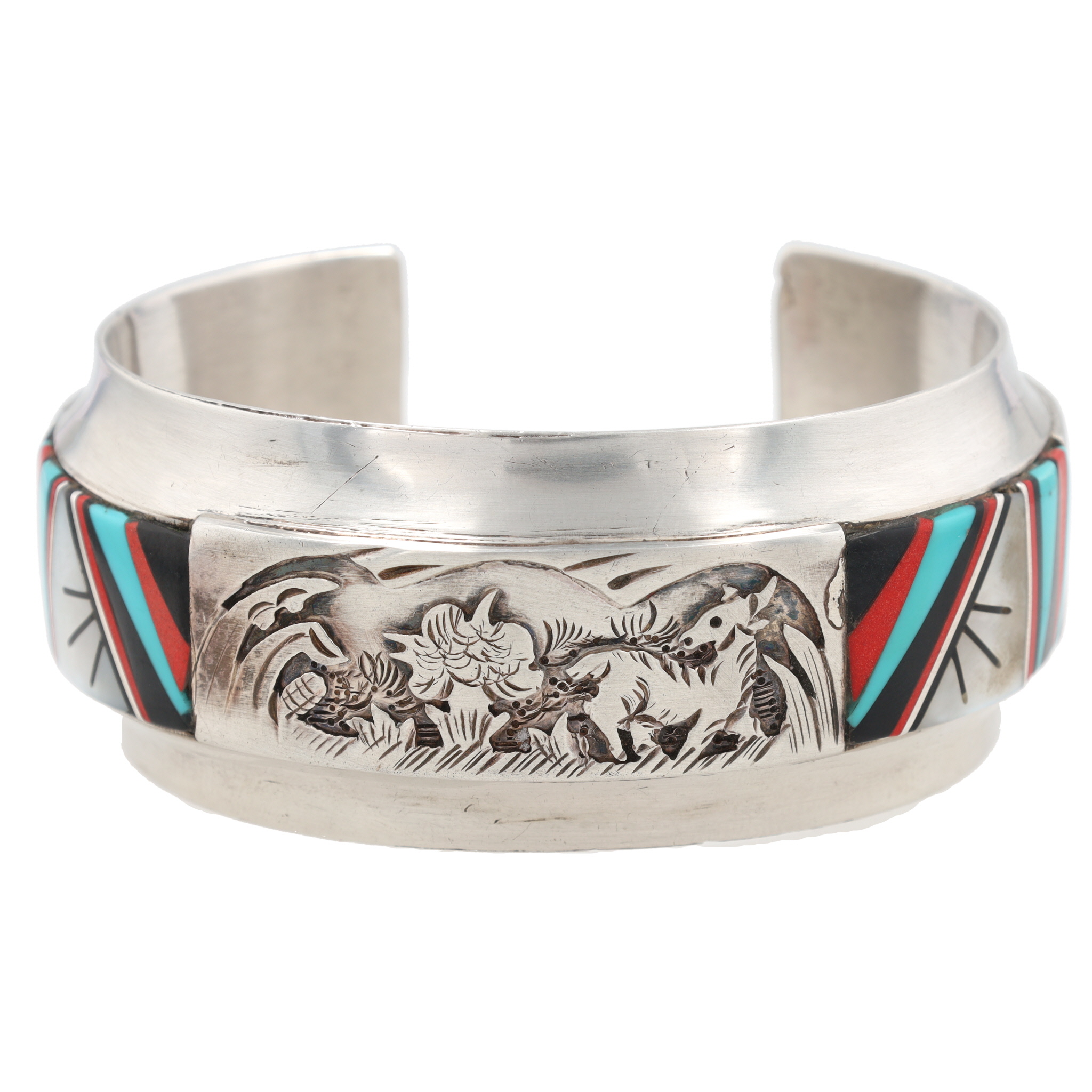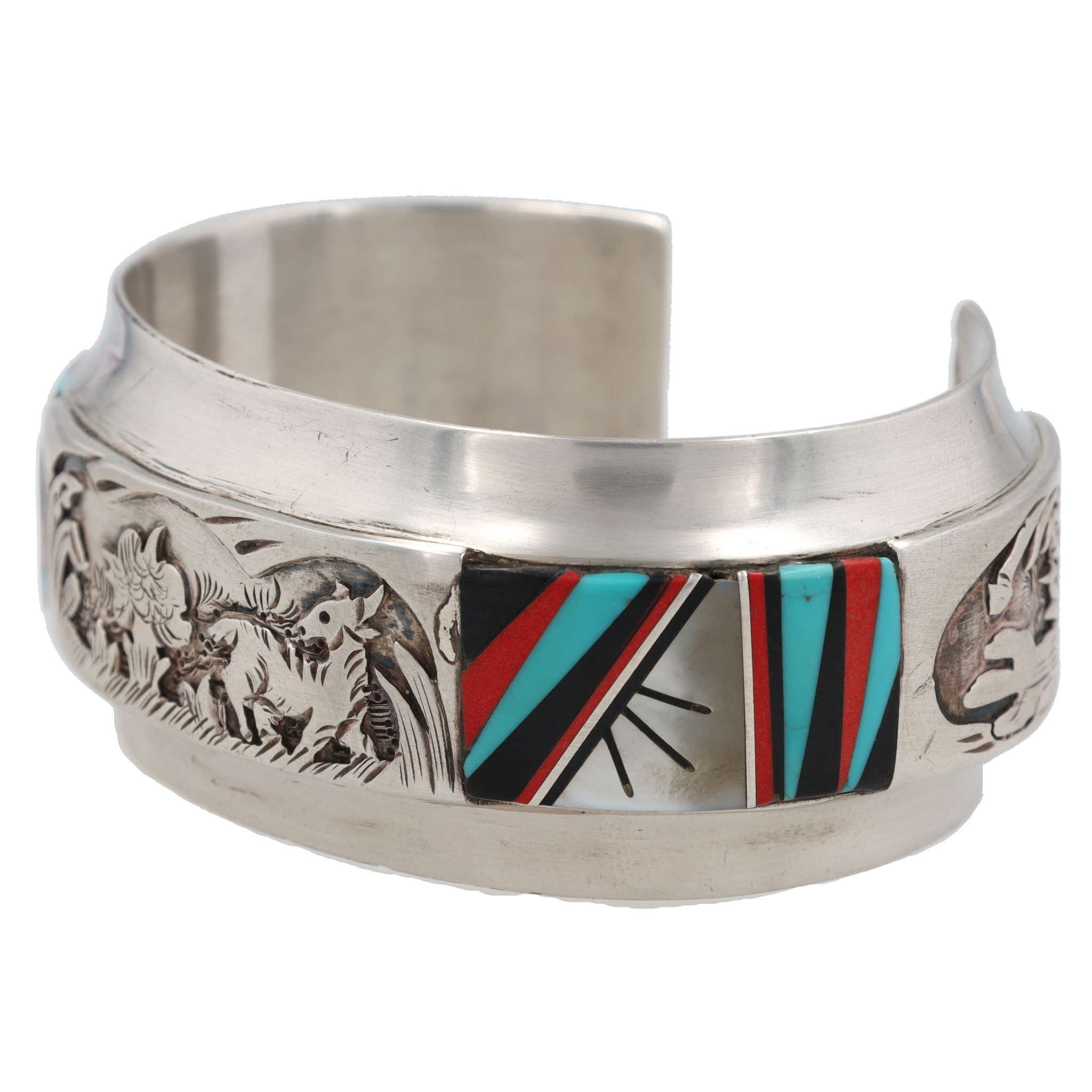 Tommy Jackson Navajo Sterling Storyteller Inlay Cuff 61.5g