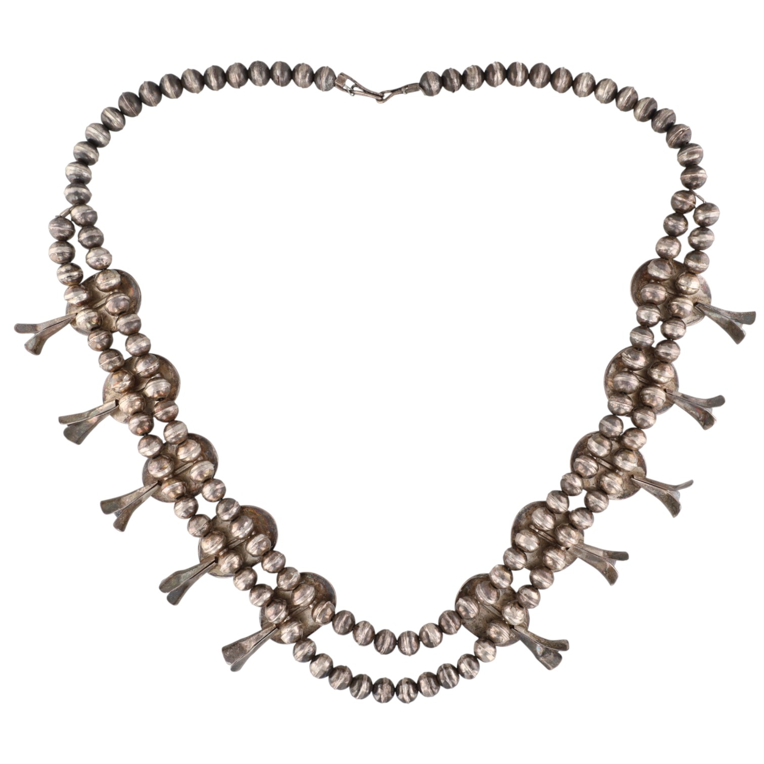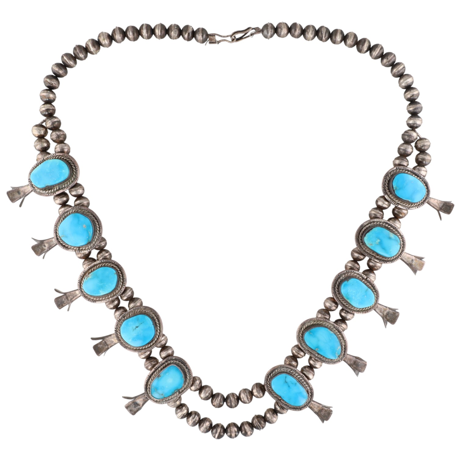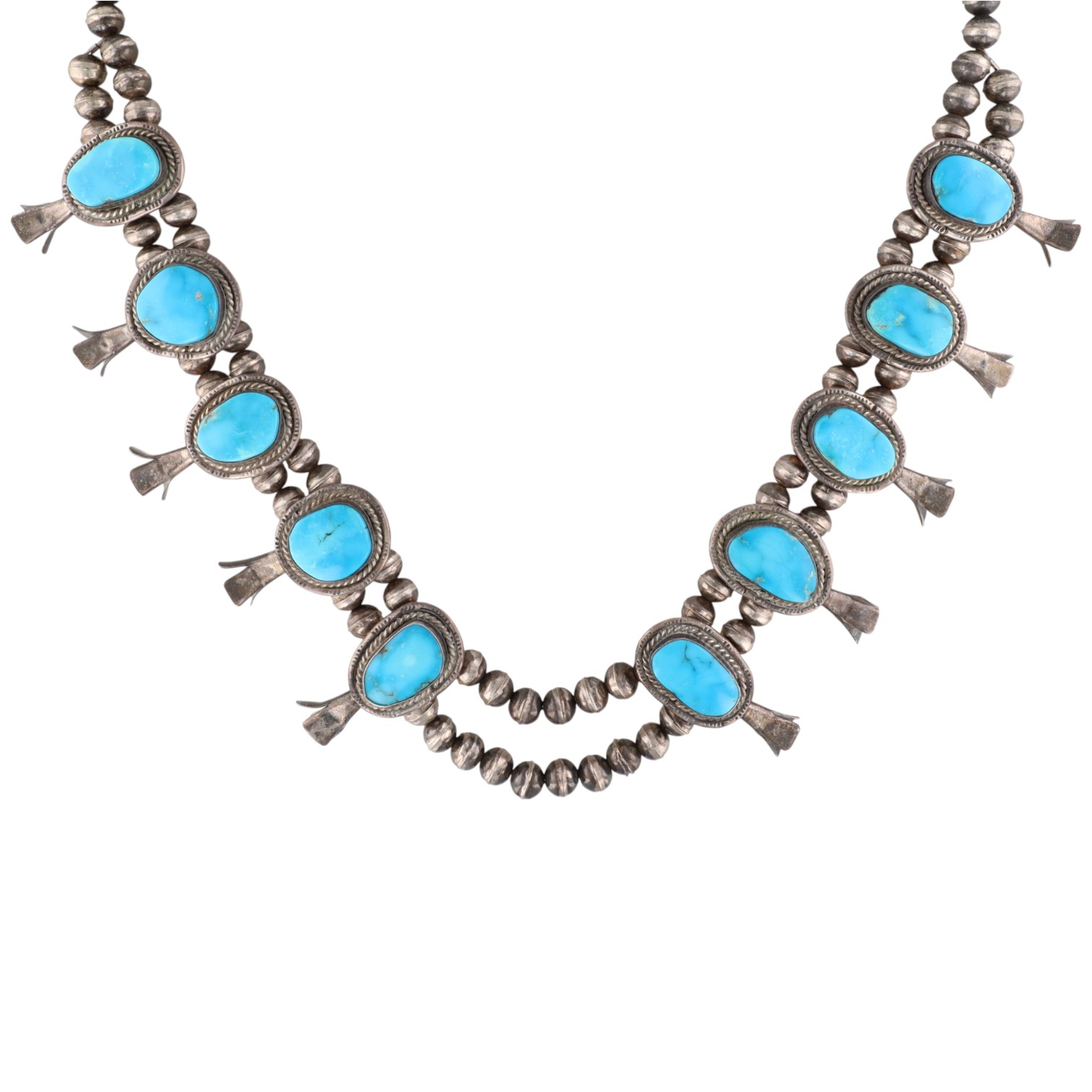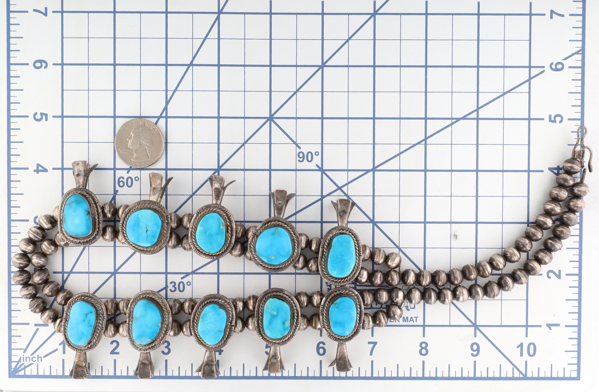 Vintage Navajo Sterling Turquoise Squash Blossom Necklace 129g