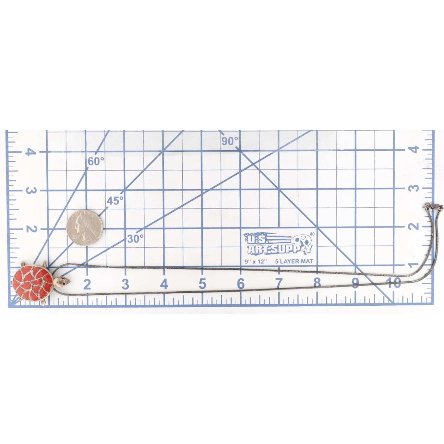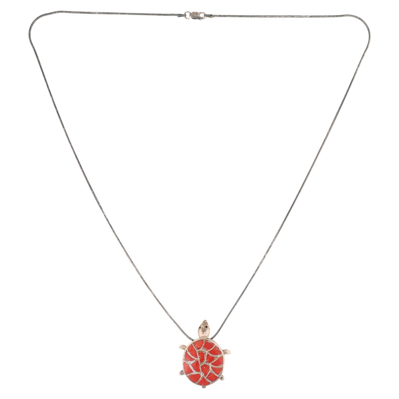 Vintage Zuni Sterling Coral Turtle Pendant 7g