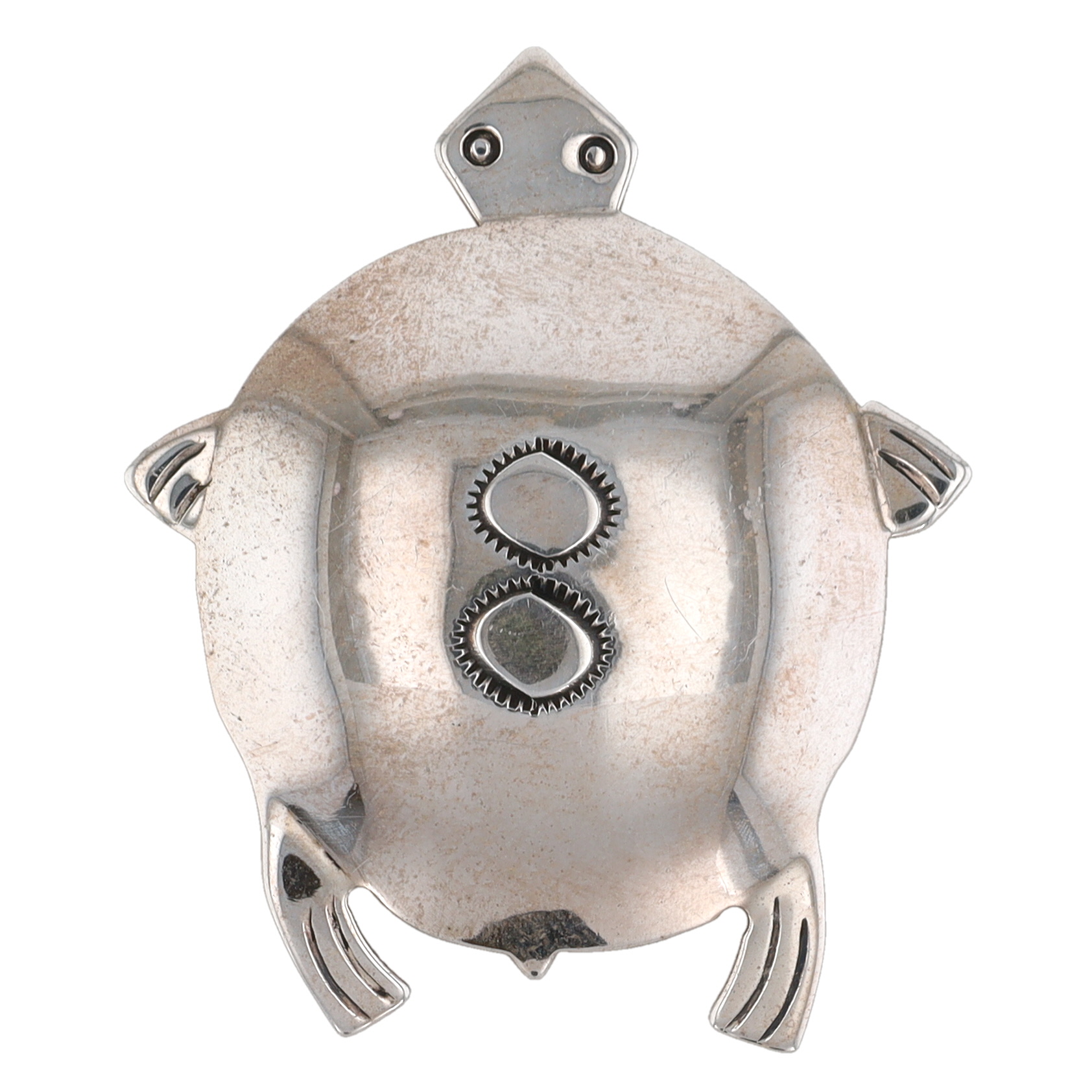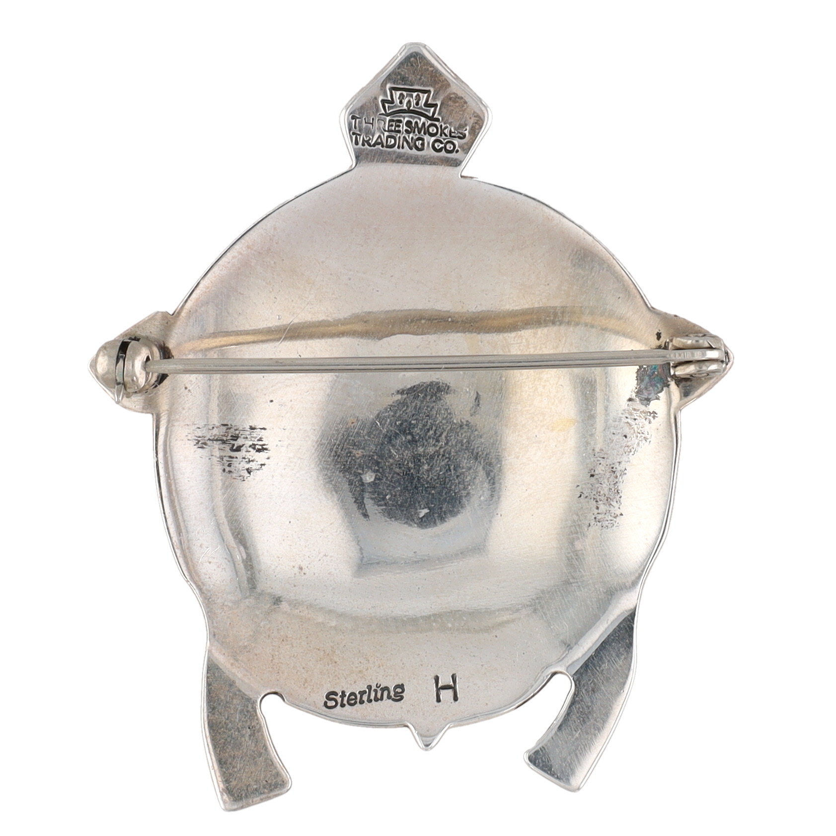 Three Smokes Trading Co. Signed H Navajo Sterling Turtle Brooch 10.5g
