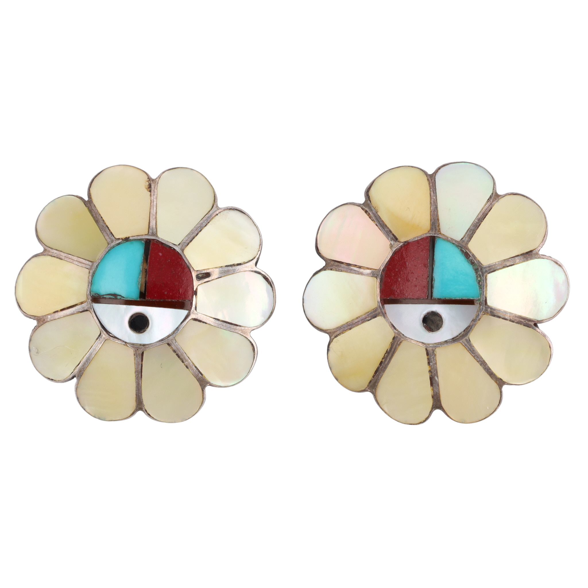LL Dickson Zuni Sterling Multi Stone Sunface Earrings 6.5g