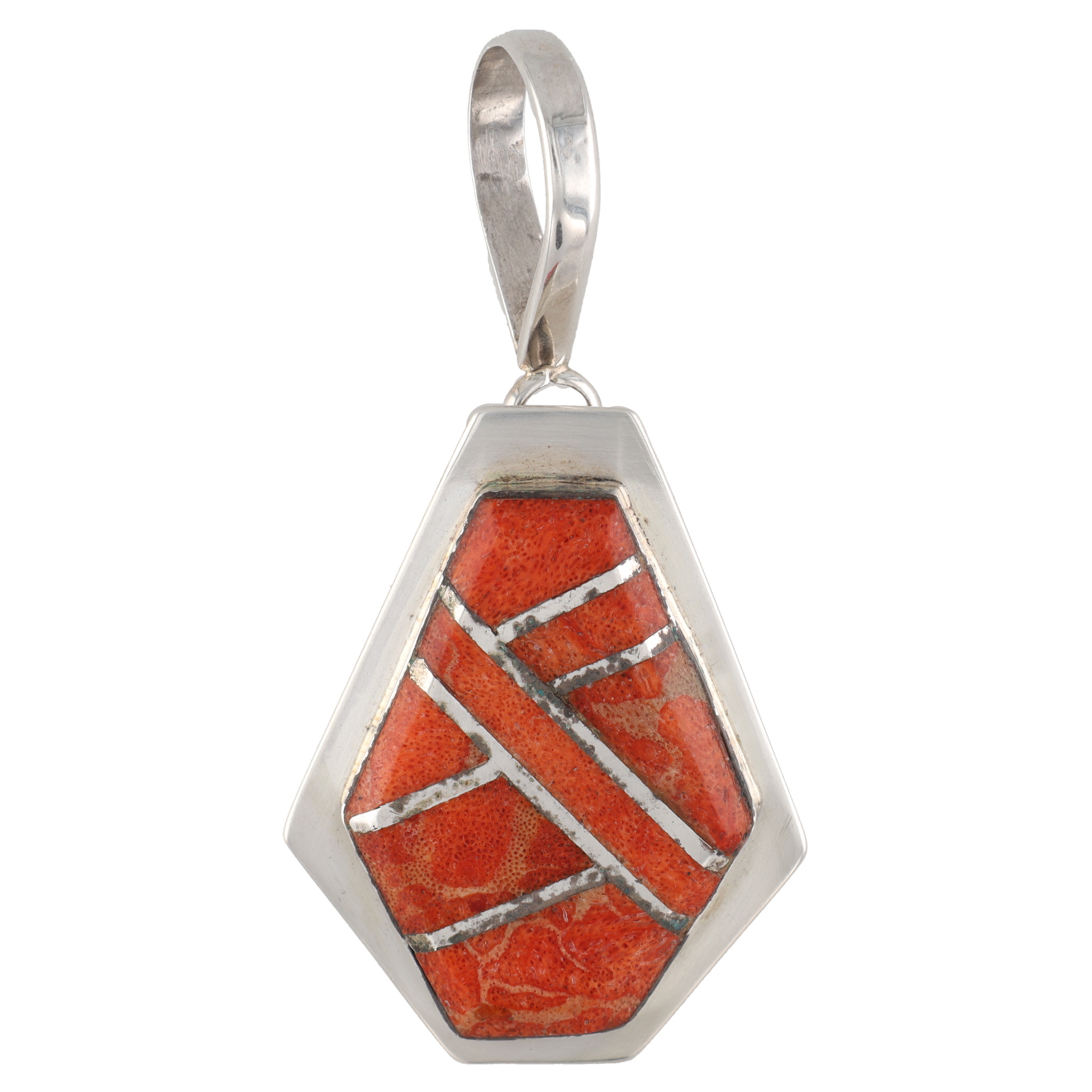 John Mike Navajo Sterling Orange Jasper Pendant