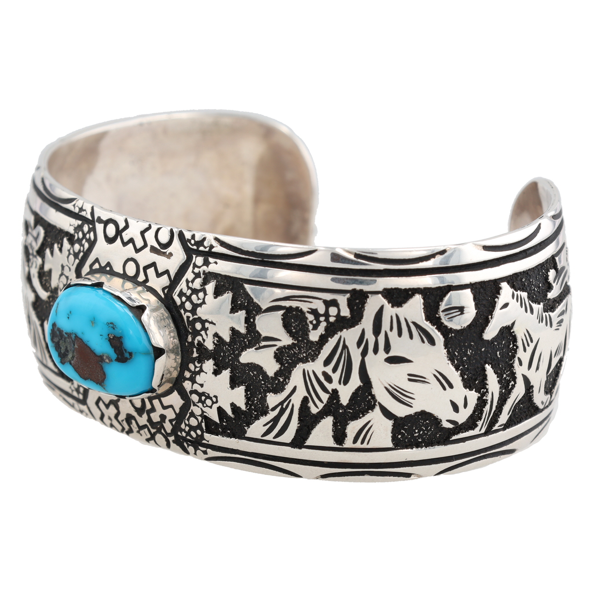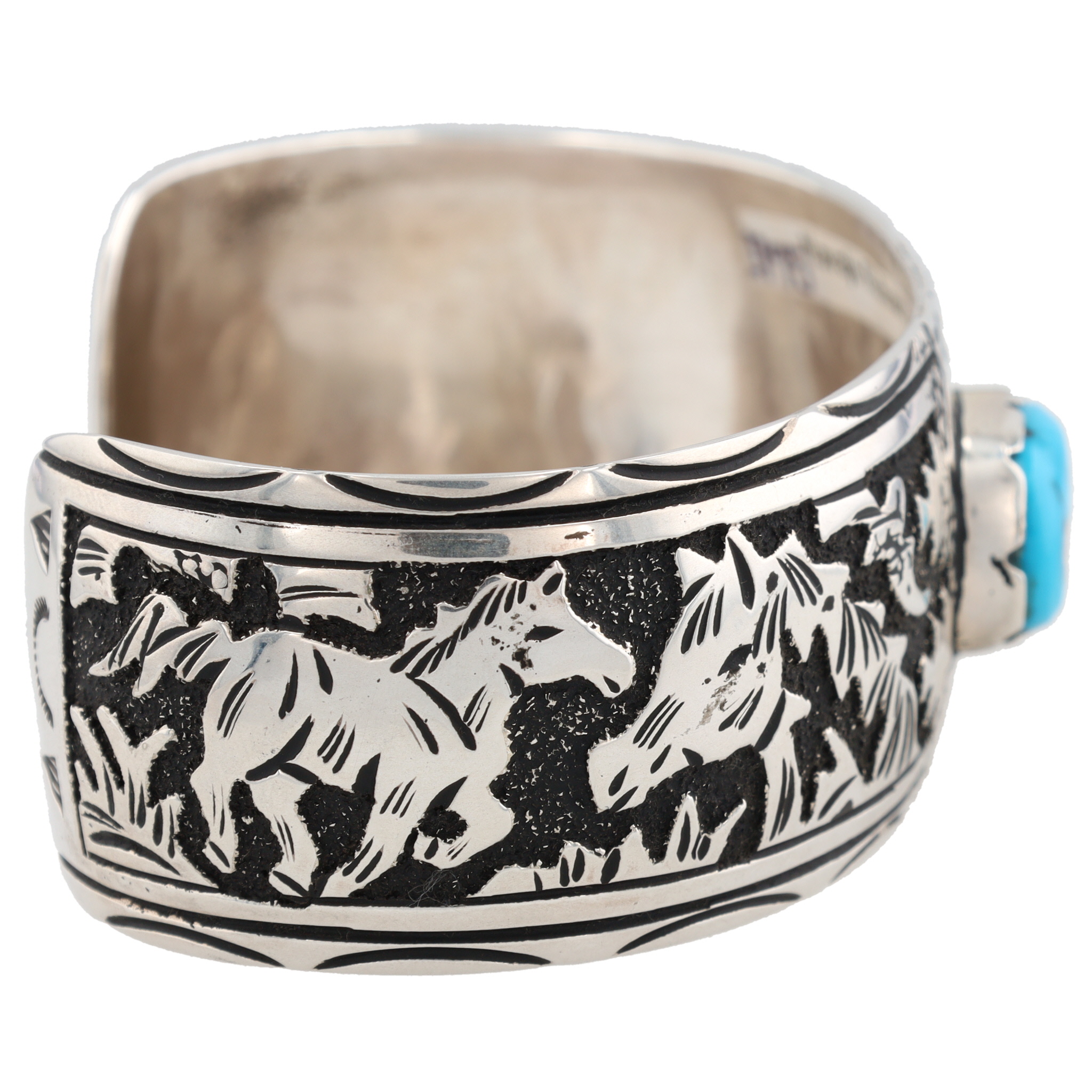 Richard Singer Navajo Sterling Turquoise Horse Cuff 38.5g