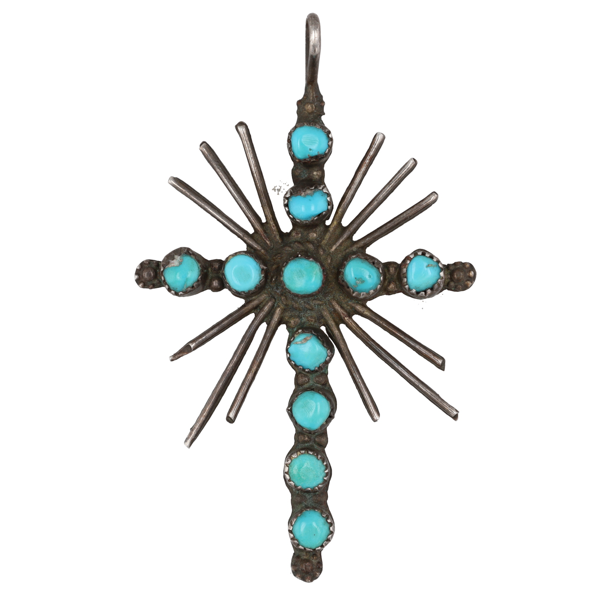 Vintage Zuni Sterling Turquoise Cross Pendant 4g