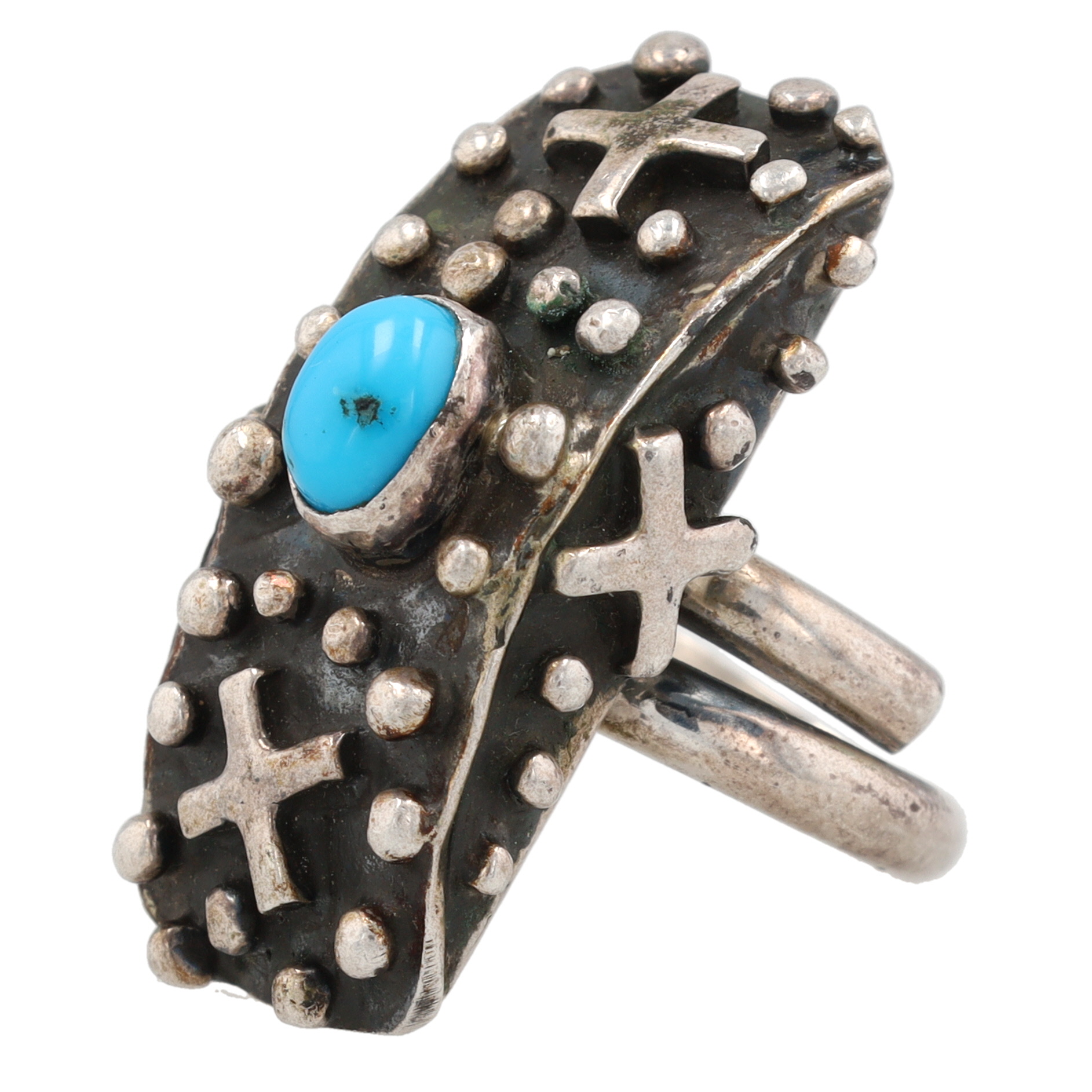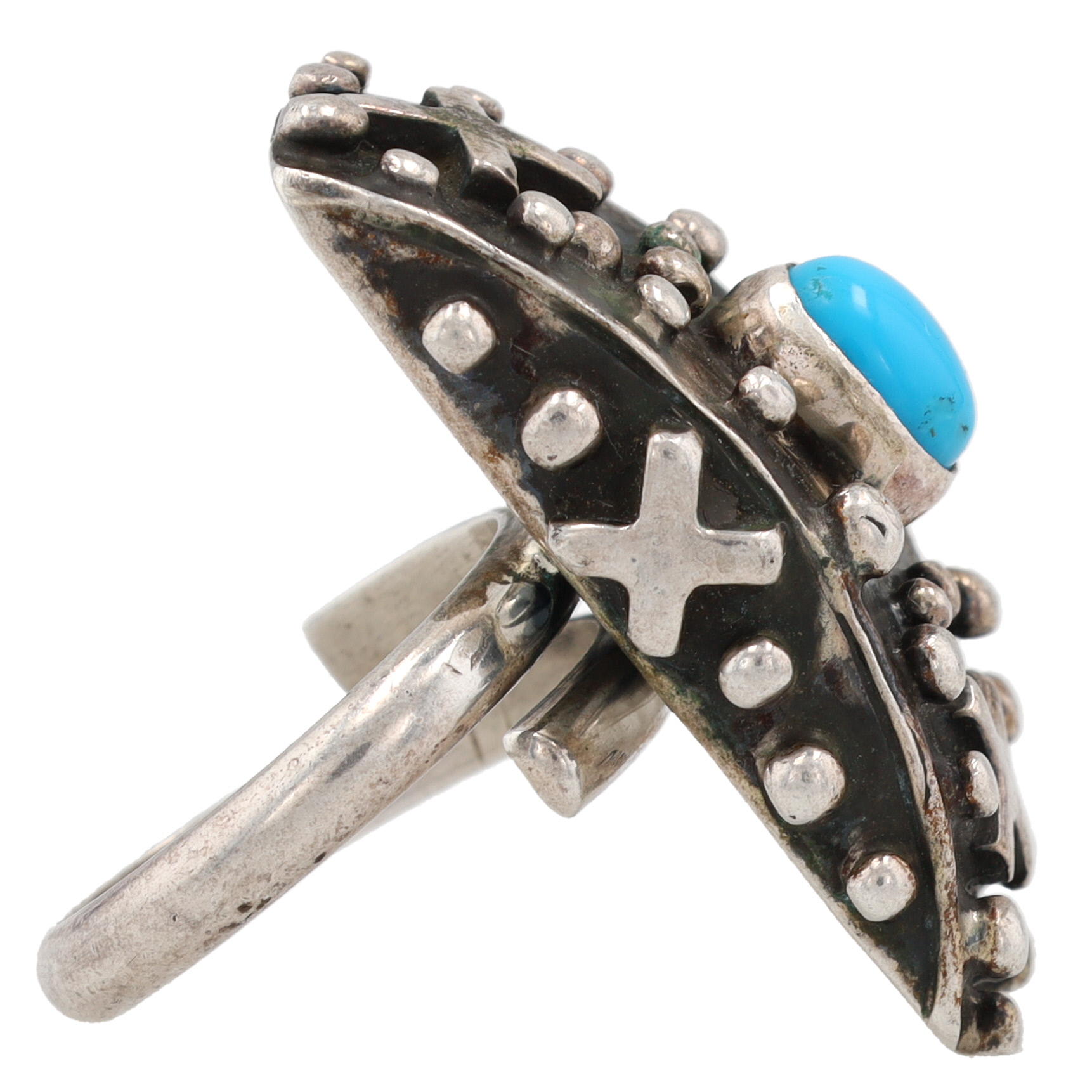 Emer Thompson Navajo Sterling Turquoise Adjustable Ring 18g