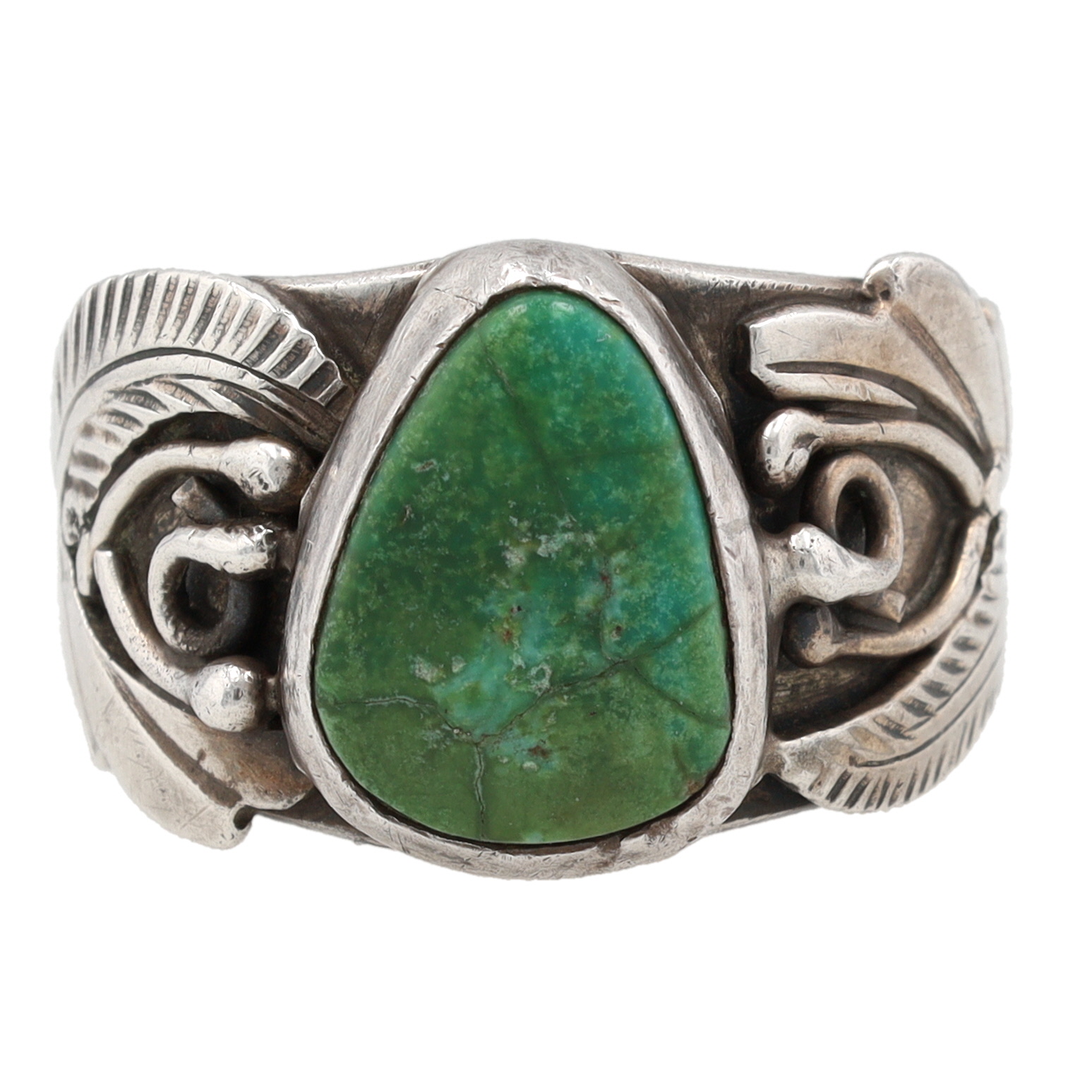 Signed CM Navajo Sterling Turquoise Ring Sz. 13, 16g