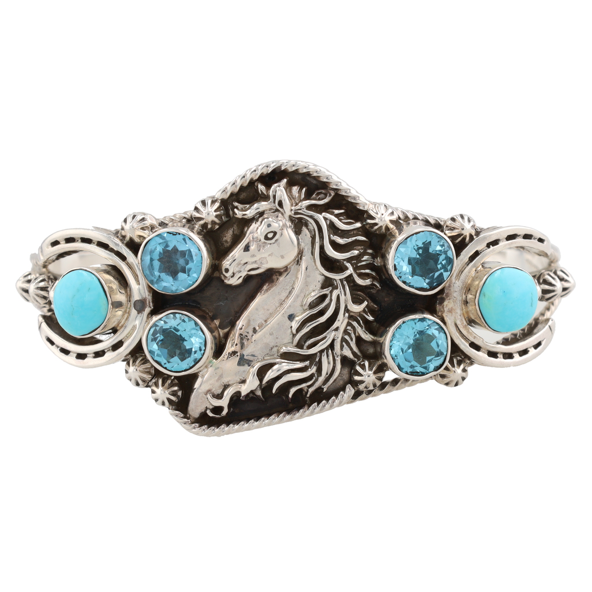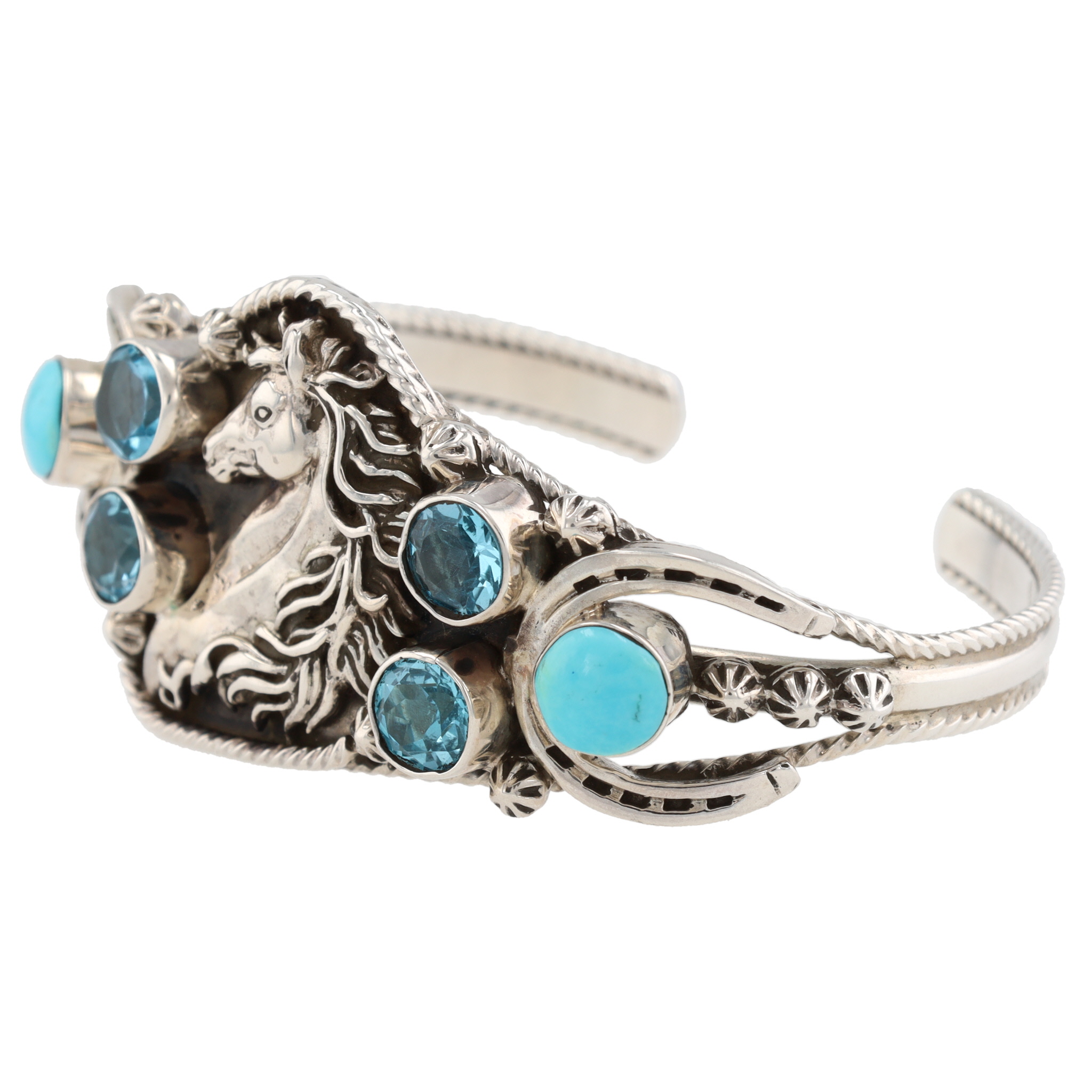 Gorgeous Running Bear Sterling Multi Stone Horse Cuff 36g