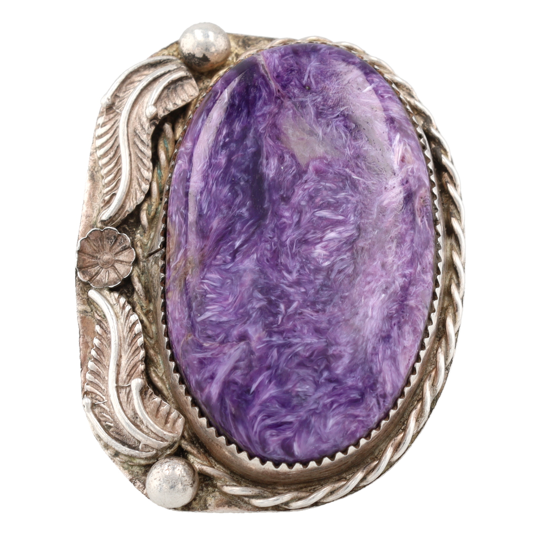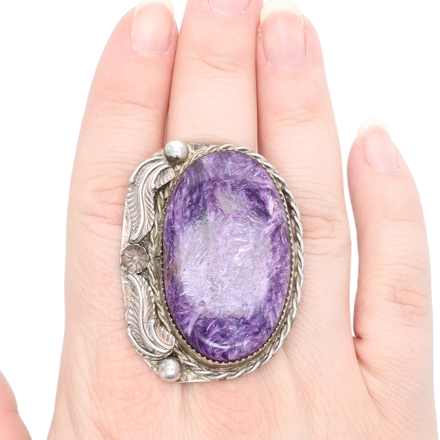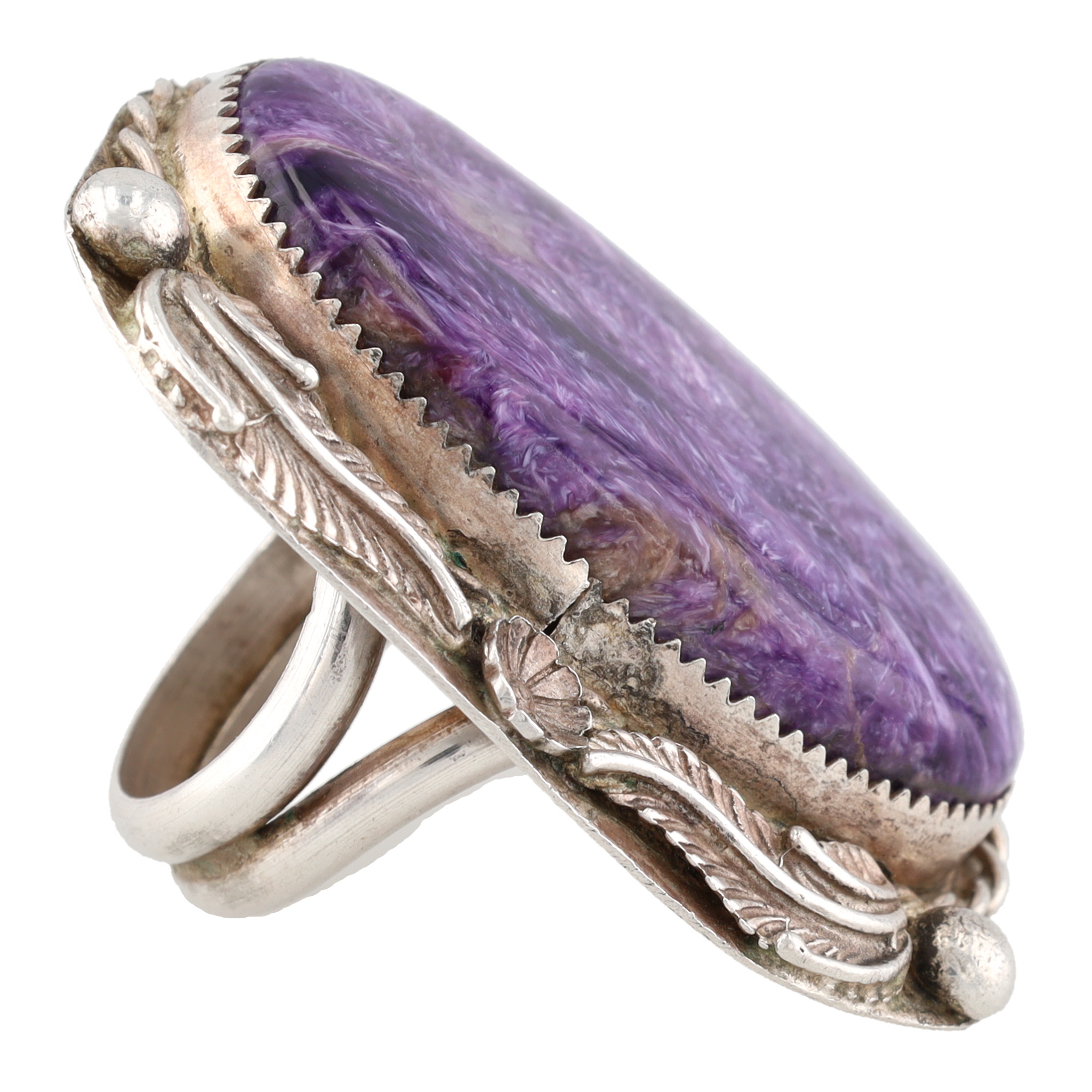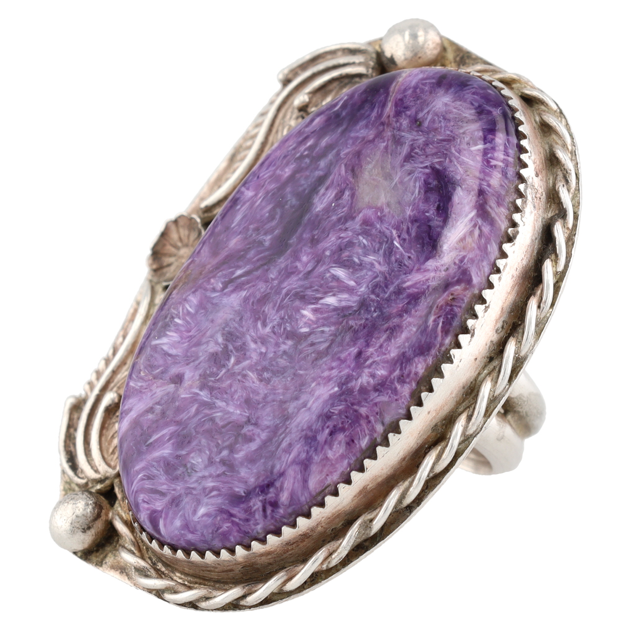 Signed J&B Navajo Sterling Charoite Statement Ring Sz. 9, 33.5g