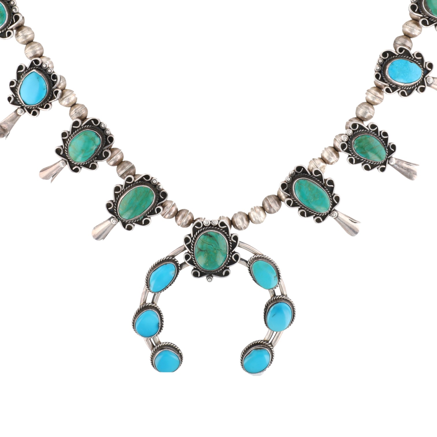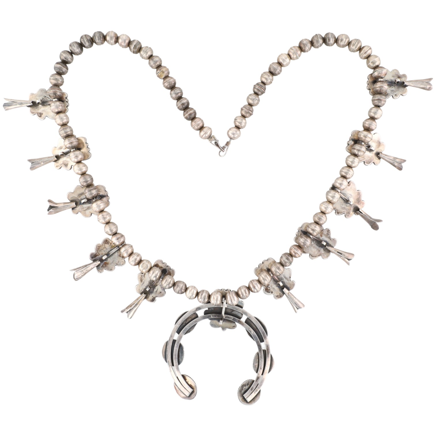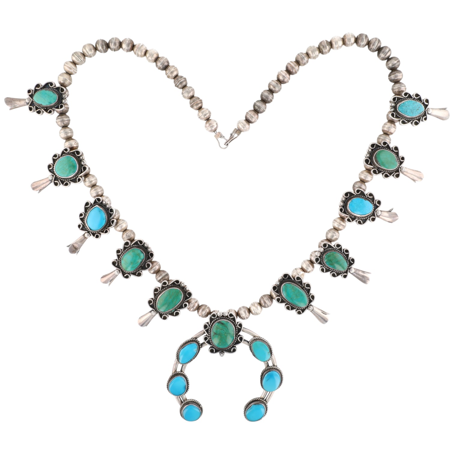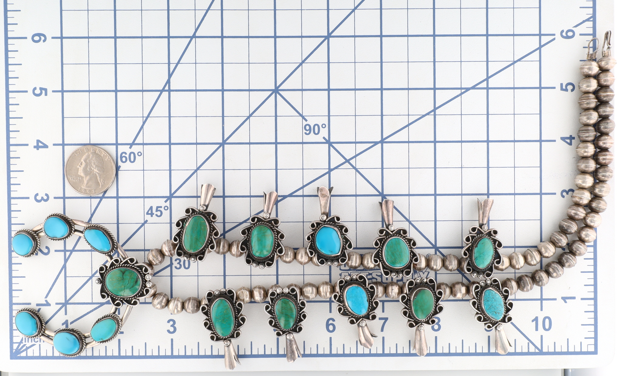 Vintage Navajo Sterling Turquoise Squash Blossom Necklace 109g