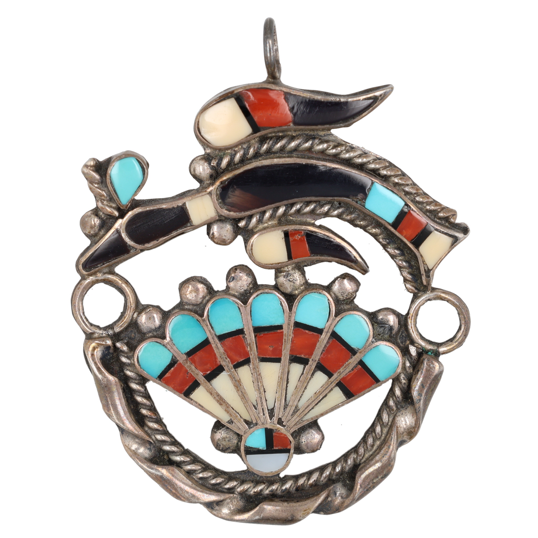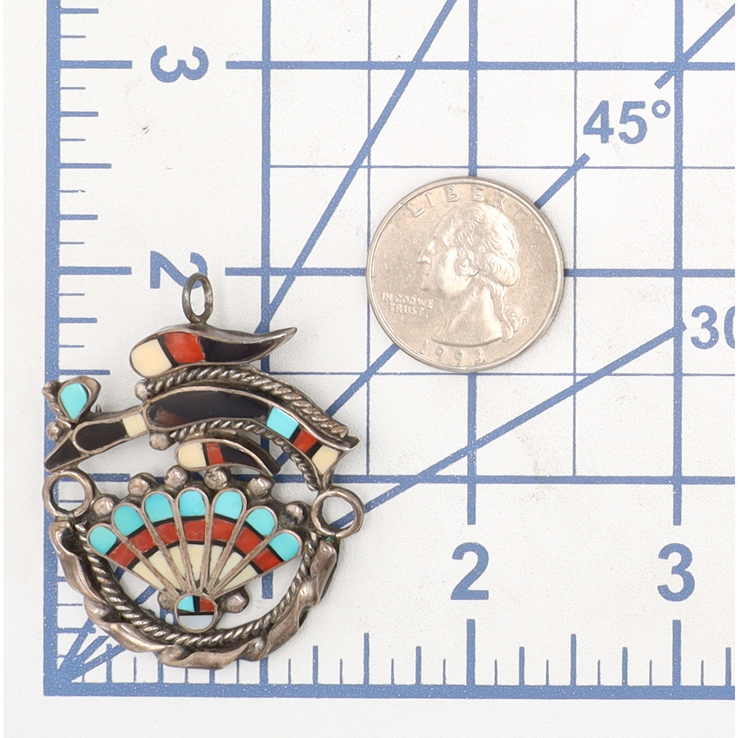 Vintage Zuni Sterling Multi Stone Thunderbird Brooch Pendant 14g