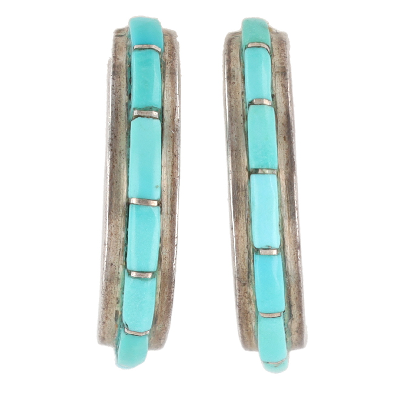 Sam Kee Navajo Sterling Turquoise Inlay Earrings 3g