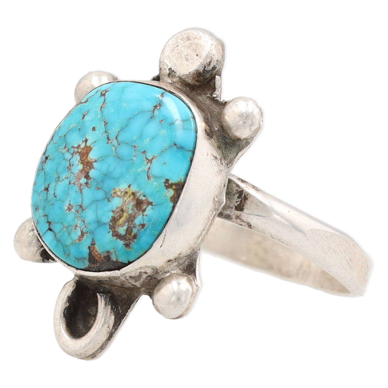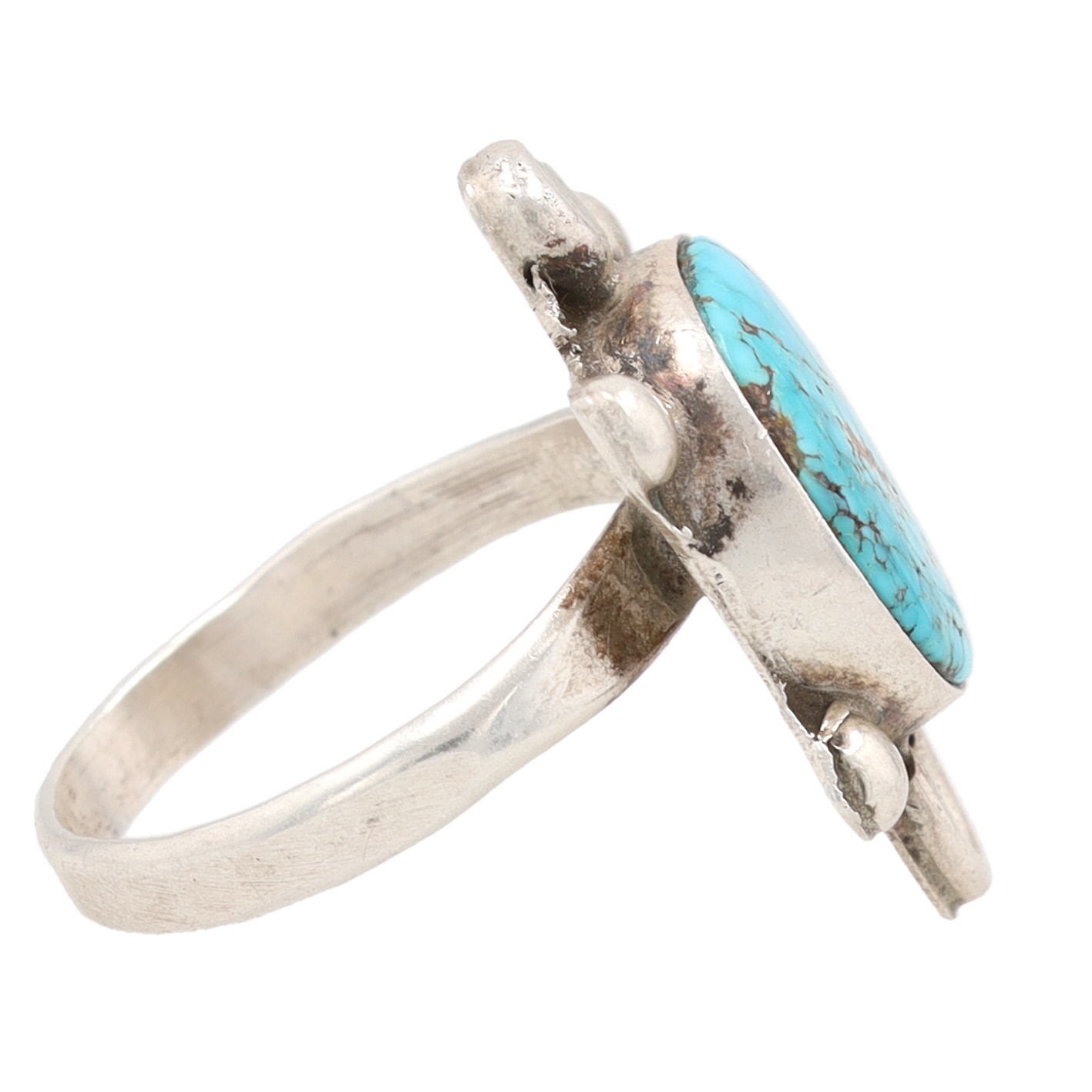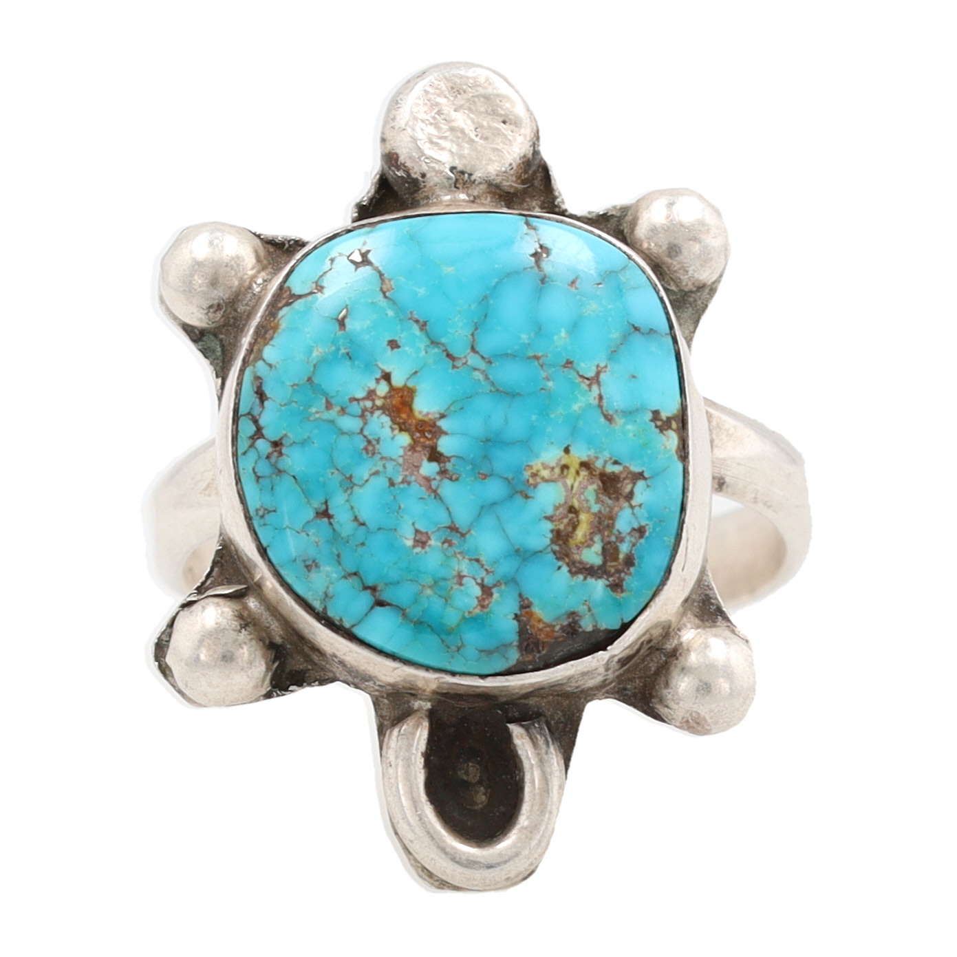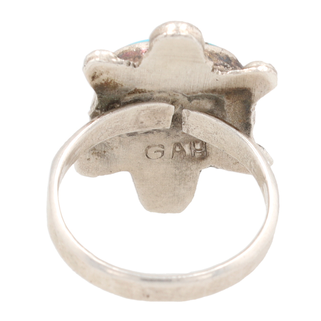 Signed GAH Navajo Old Pawn Sterling Turquoise Turtle Ring Sz. 6.5, 4.5g