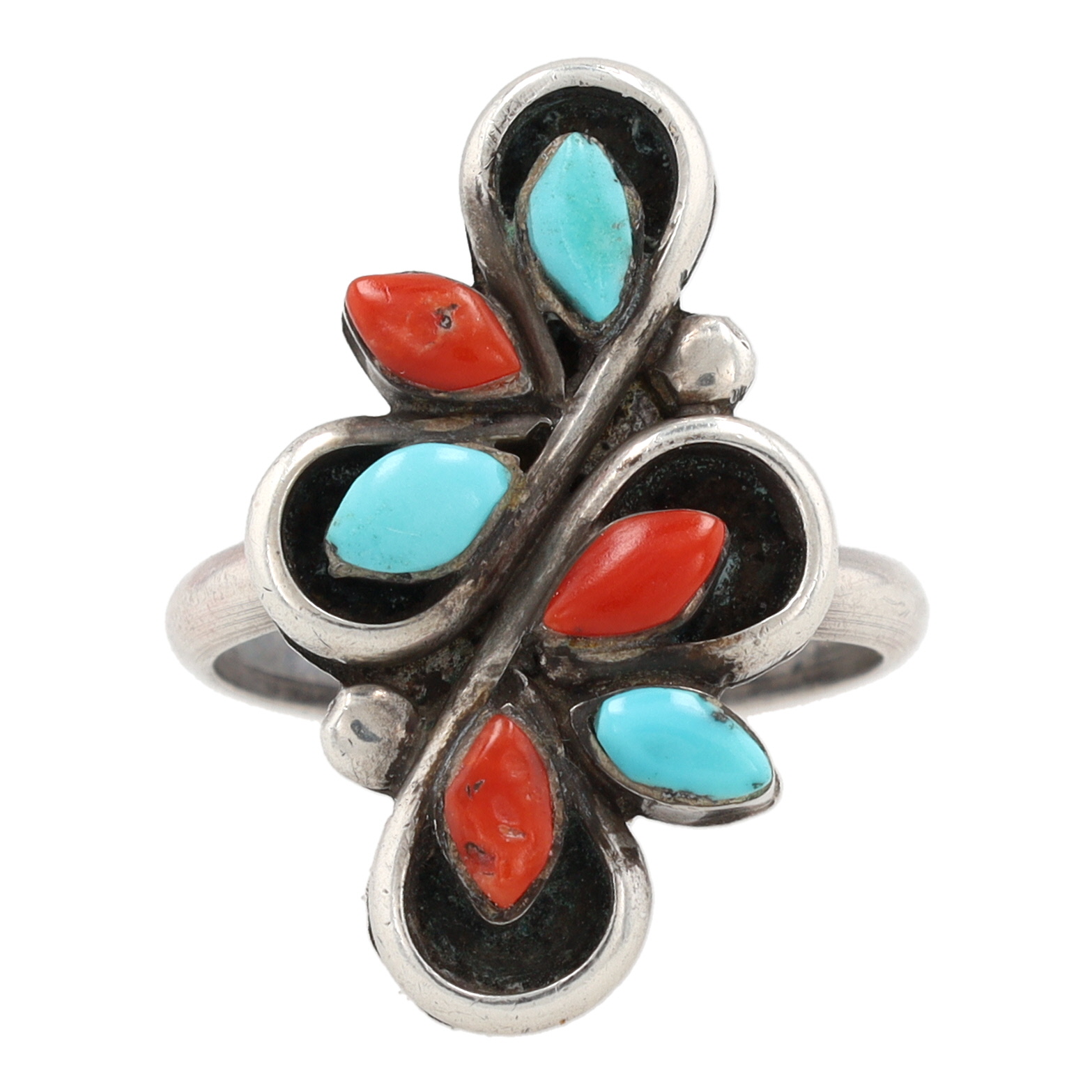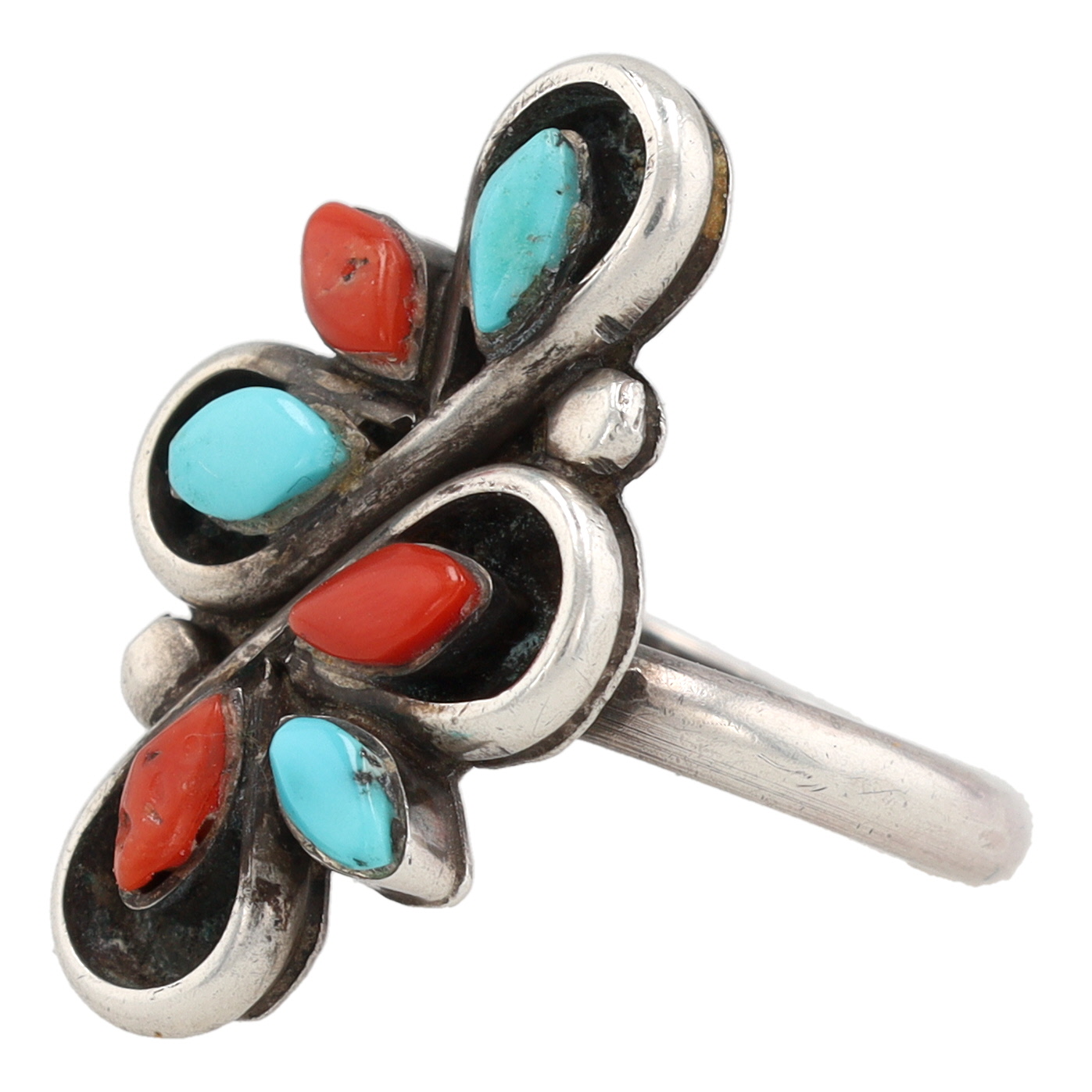 Vintage Navajo Sterling Multi Stone Ring Sz. 7, 4.5g