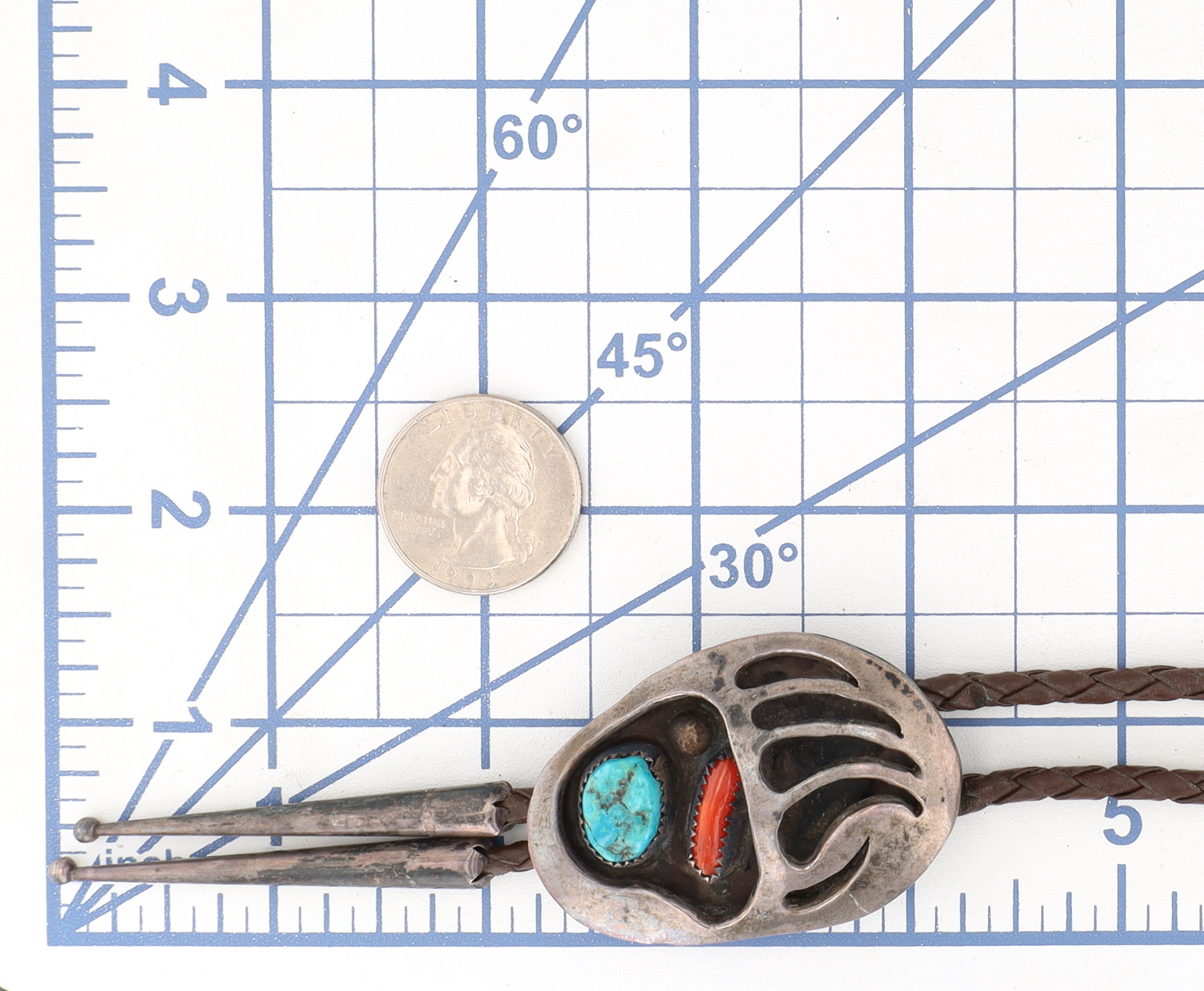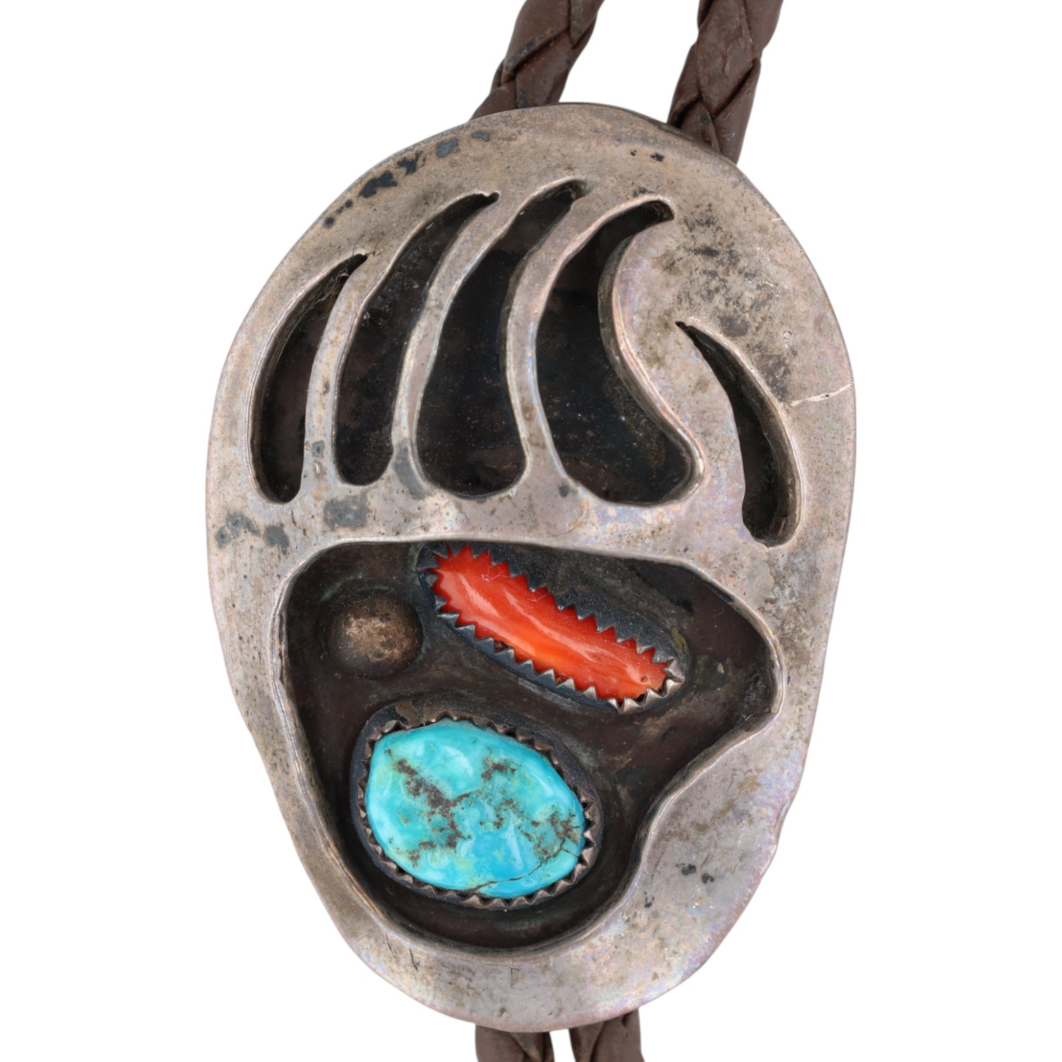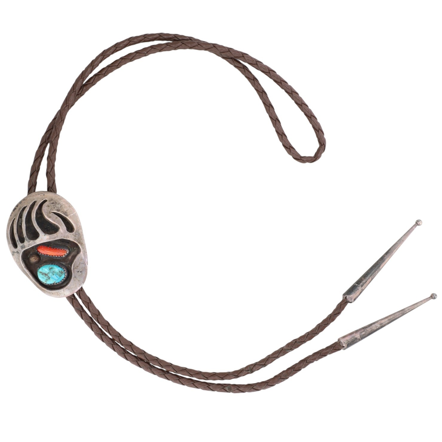 Signed Navajo Sterling Multi Stone Bear Paw Bolo Tie 39g
