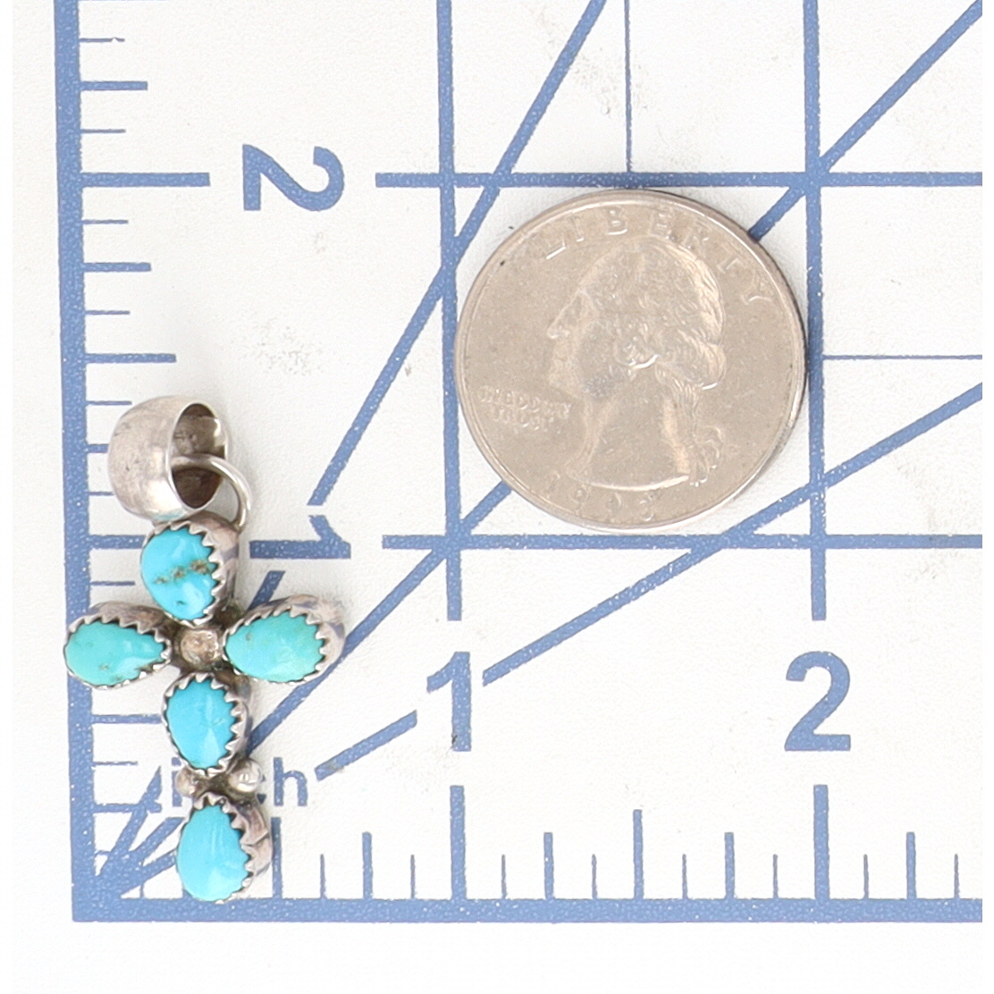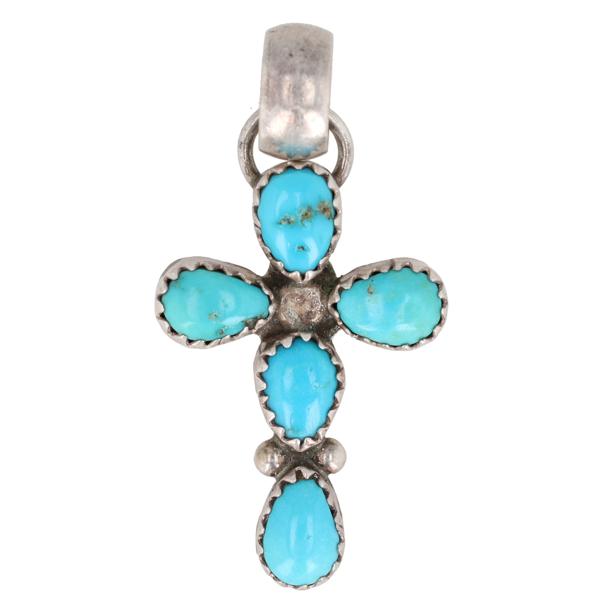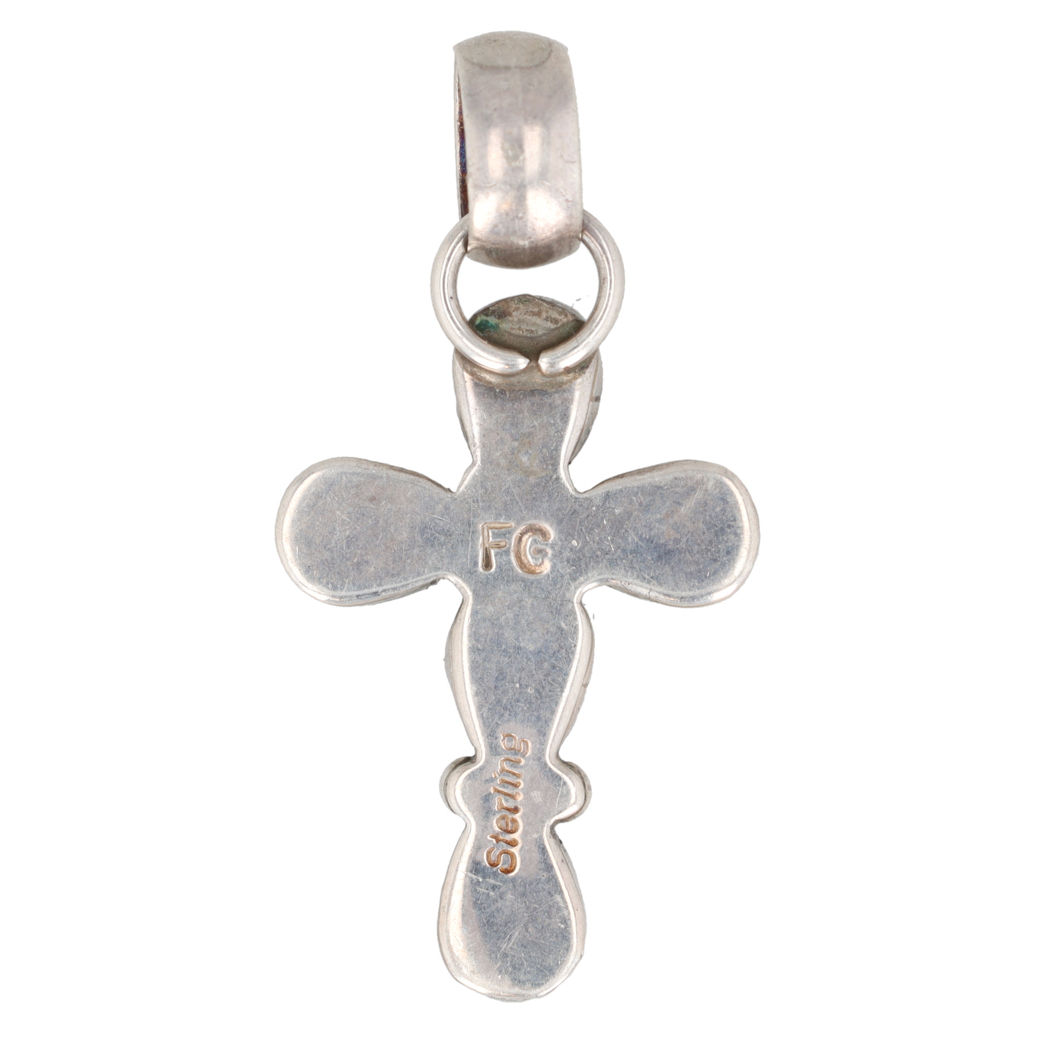 Signed FG Navajo Sterling Turquoise Cross Pendant 4g