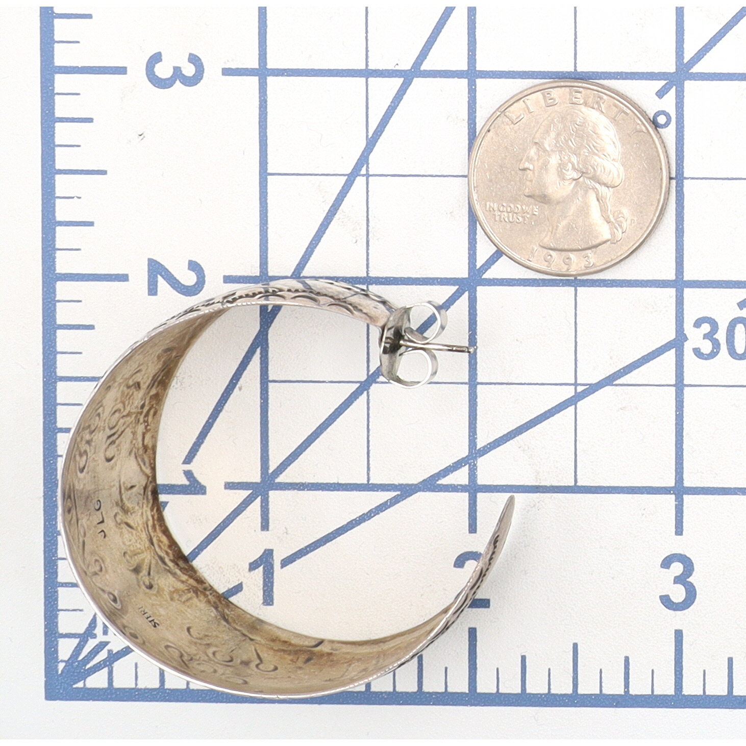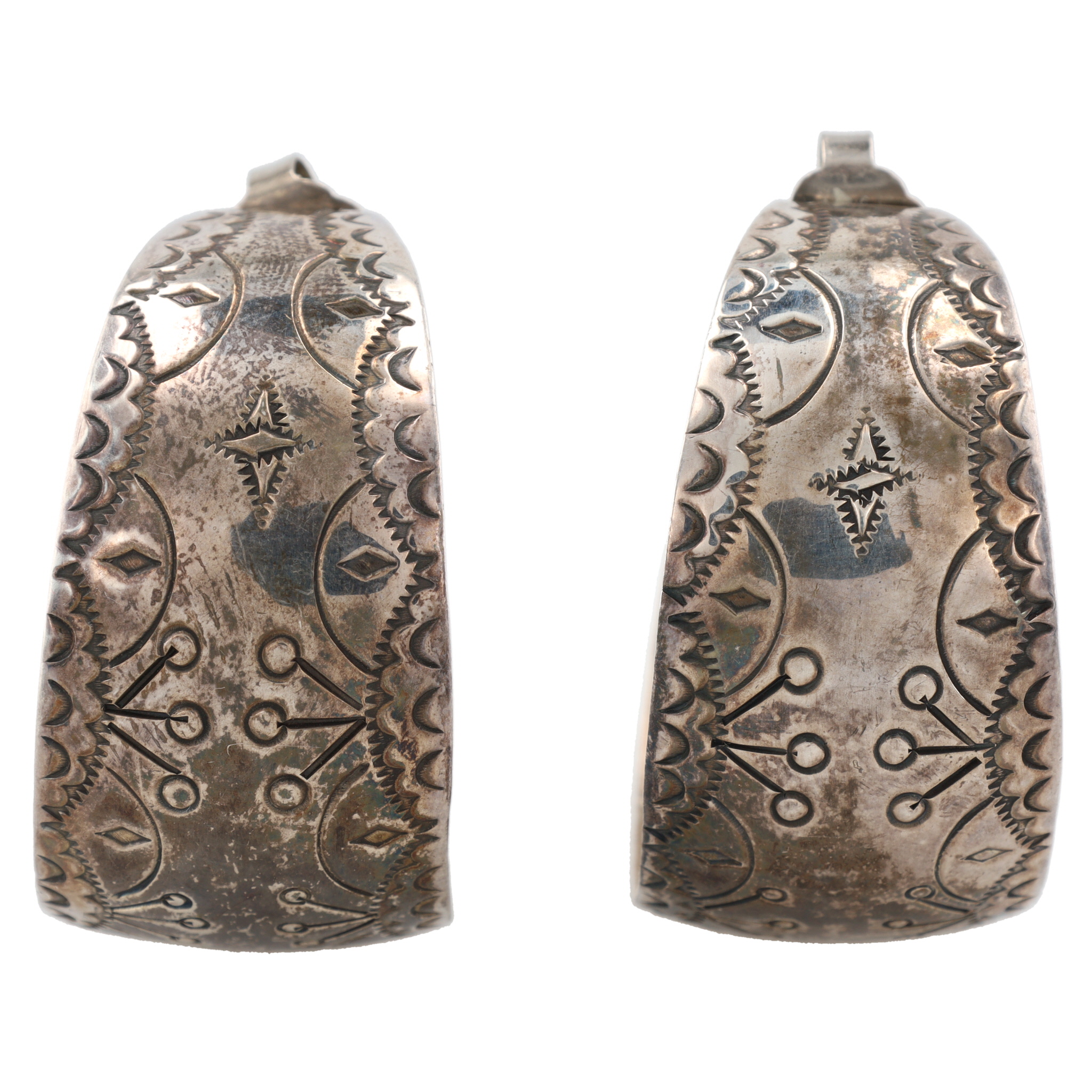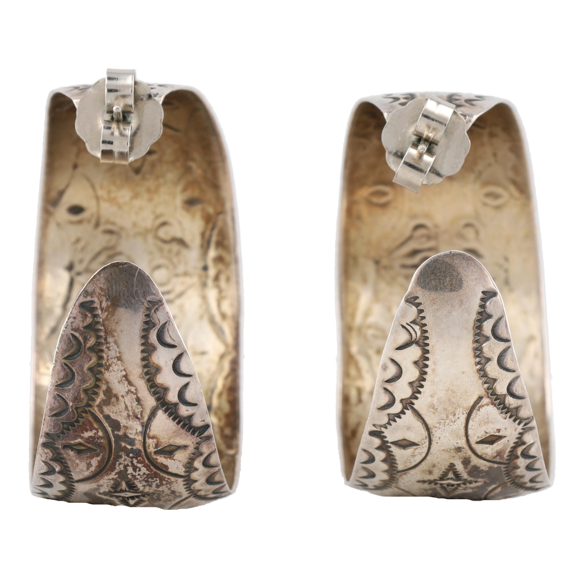 Signed JLG Navajo Stamped Sterling Earrings 24g