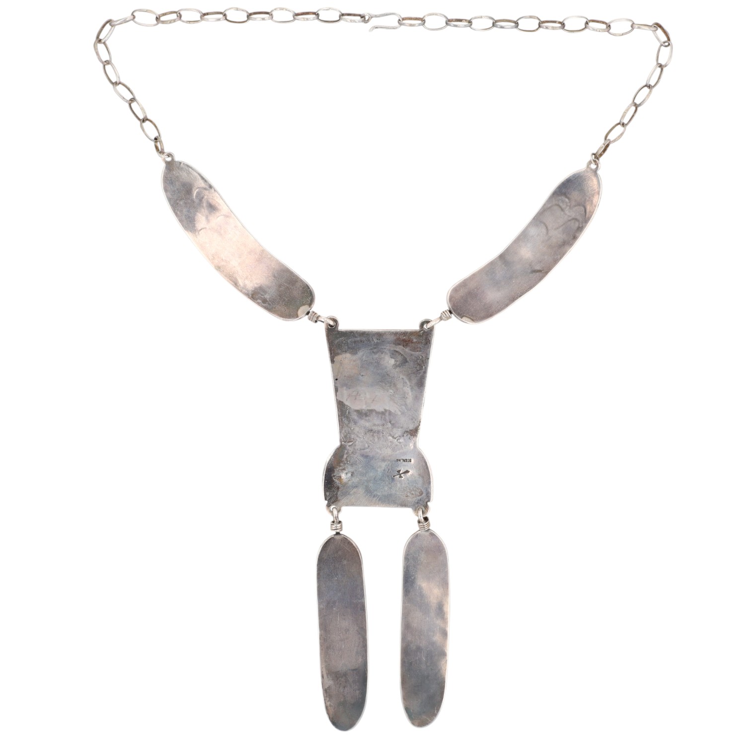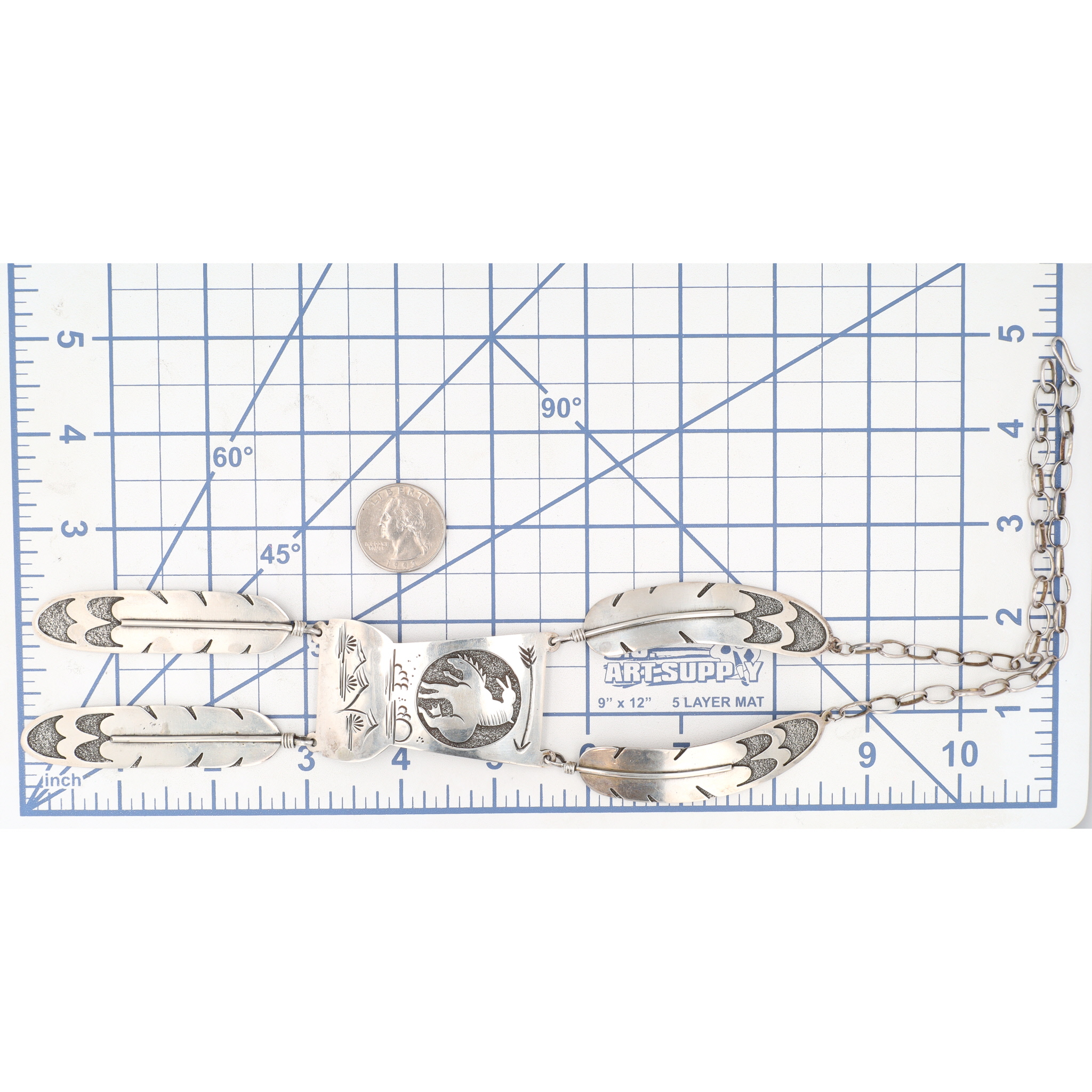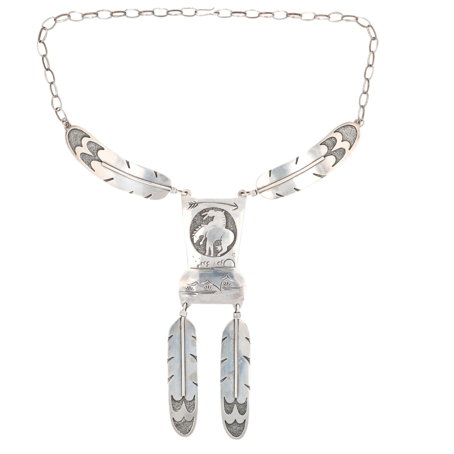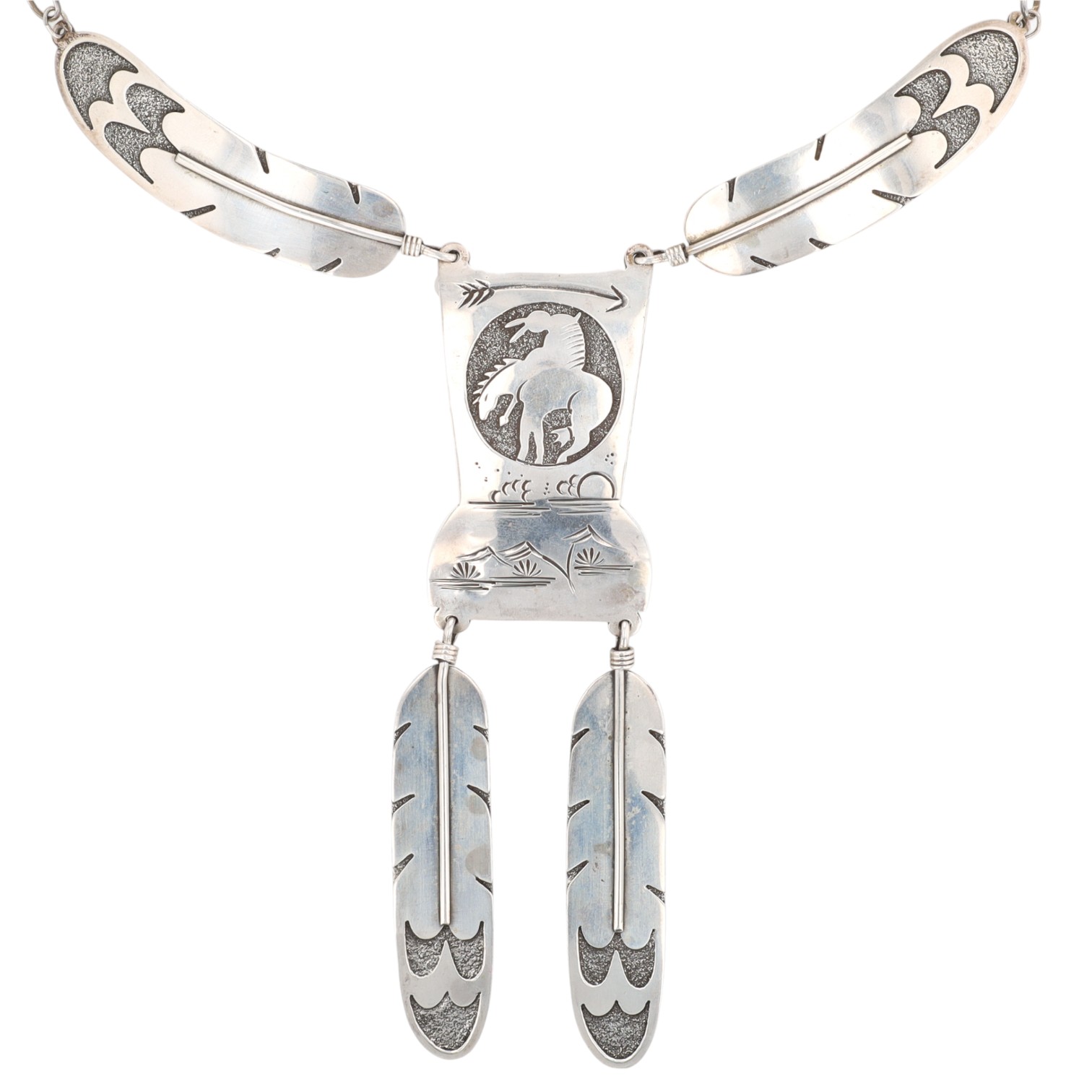Gibson Gene Navajo Sterling Rider Overlay Feather Necklace 65.5g