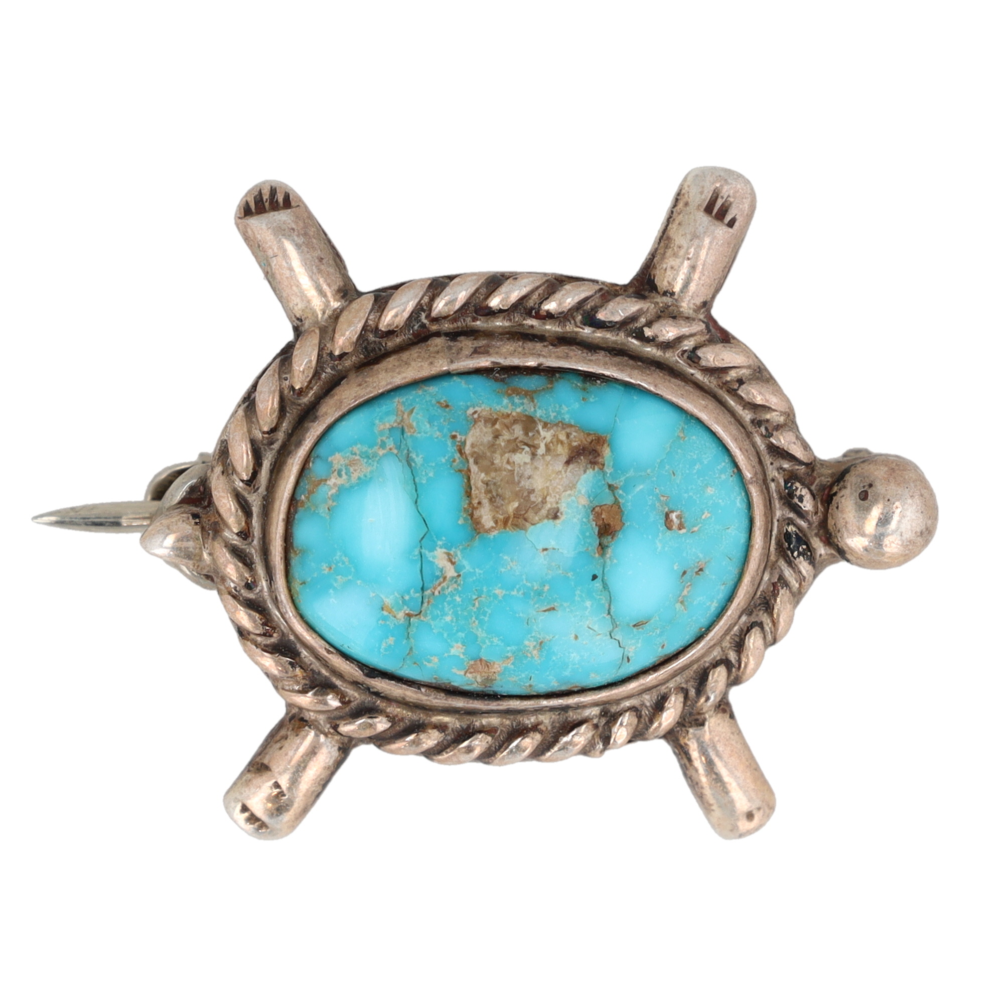 3 Hogans Turquoise Sterling Turtle Brooch 4.5g