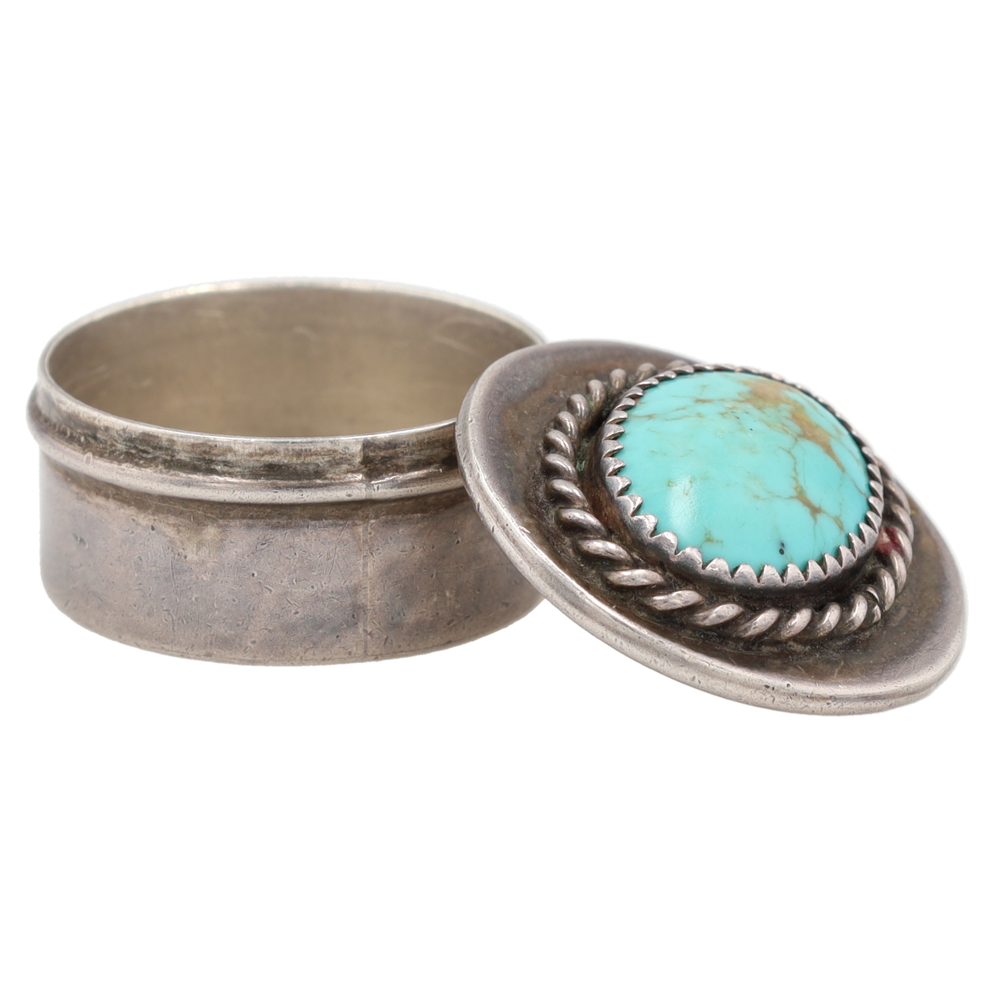 Vintage Navajo Sterling Turquoise Pill Box 8.5g