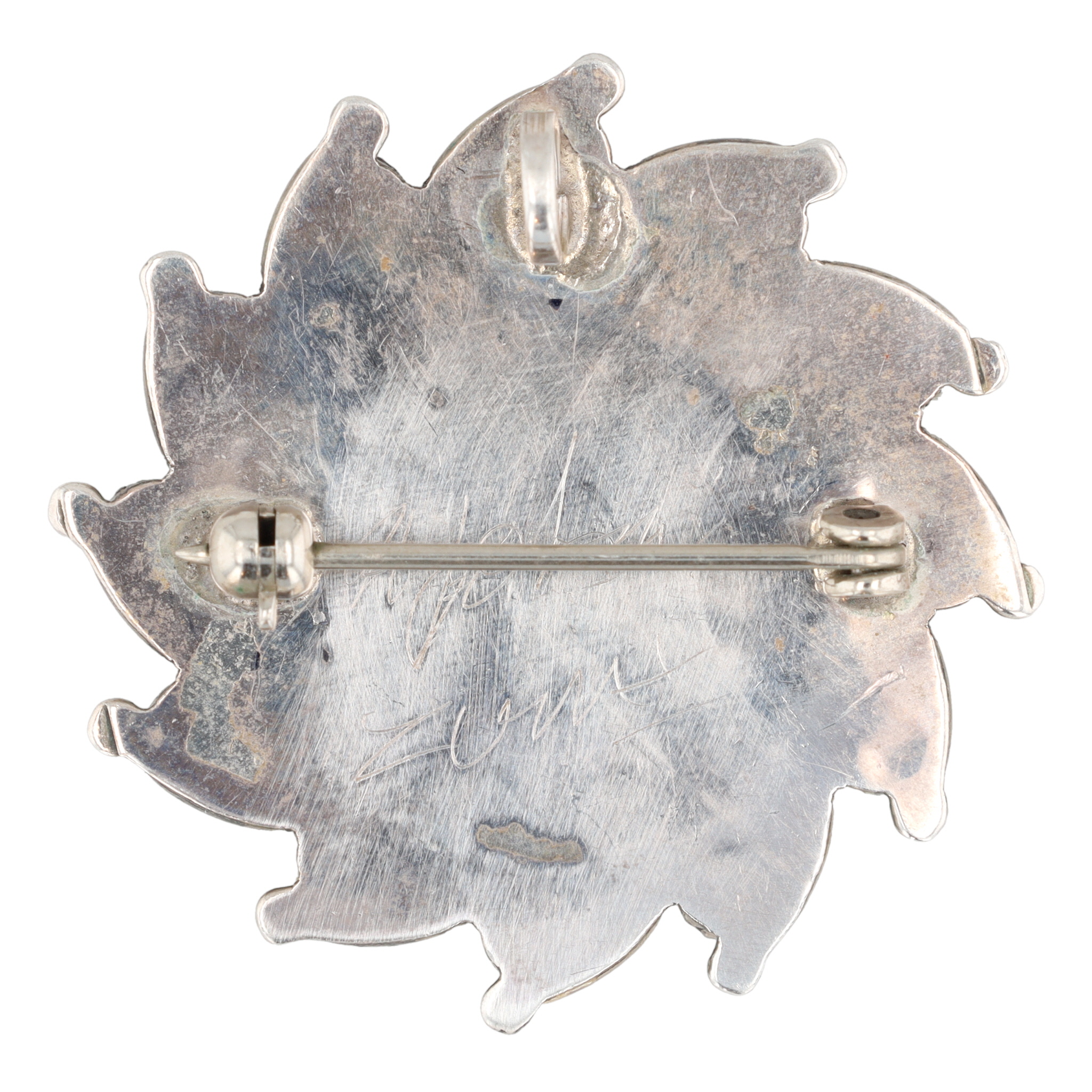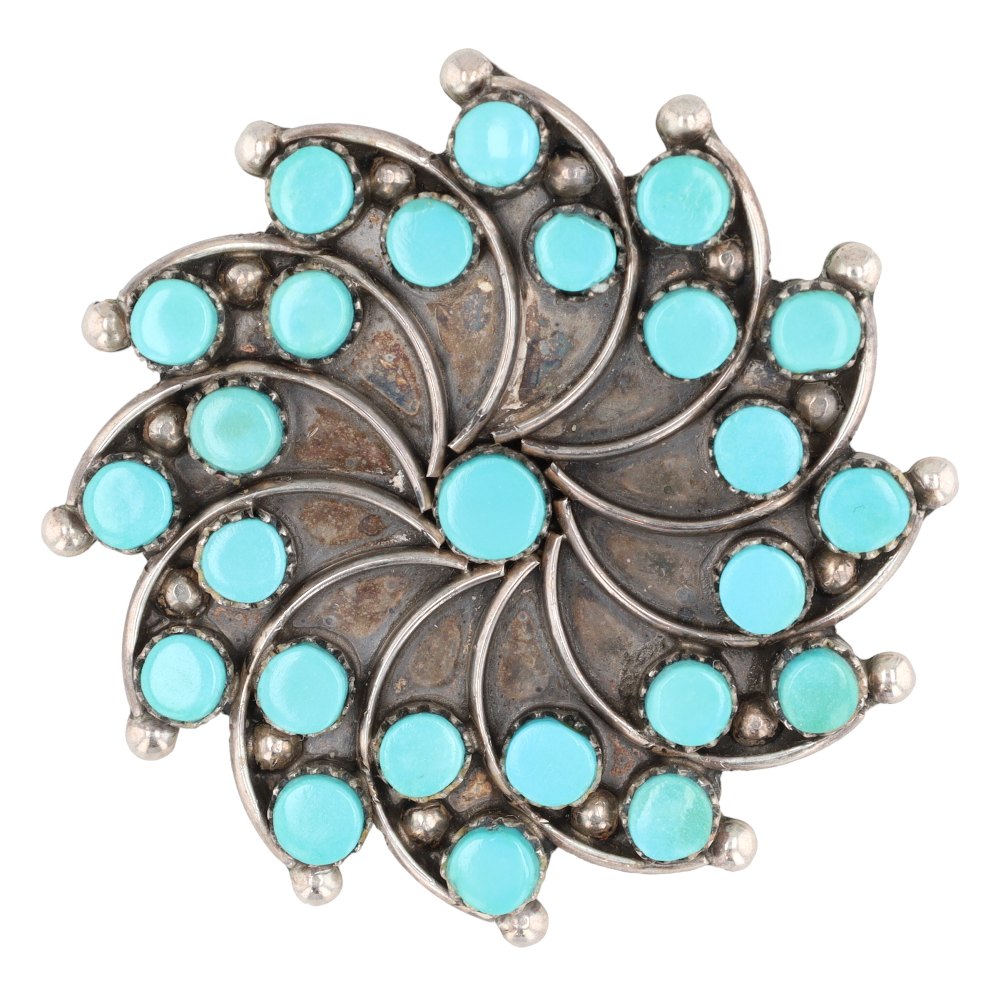 Signed Zuni Sterling Turquoise Spiral Brooch Pendant 7g