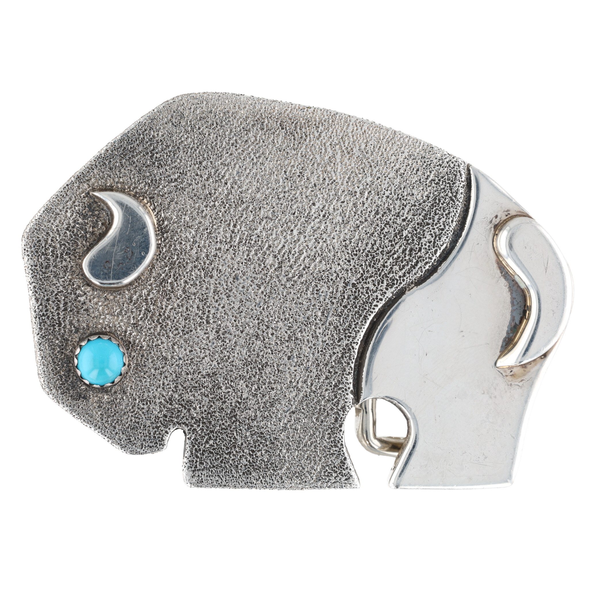 J. Nelson Navajo Sterling Turquoise Buffalo Belt Buckle 47g