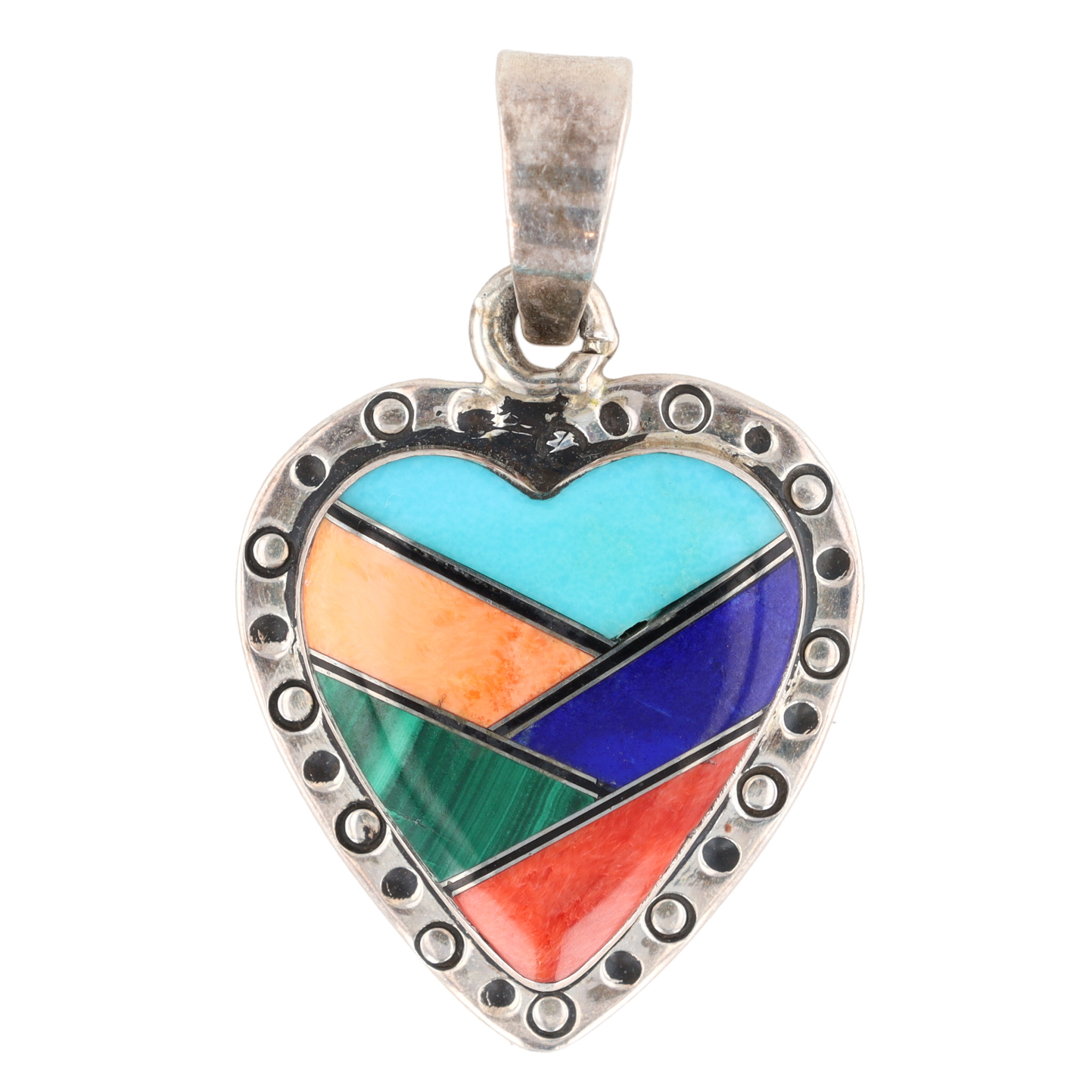 James Shay Navajo Sterling Multi Stone Inlay Heart Pendant