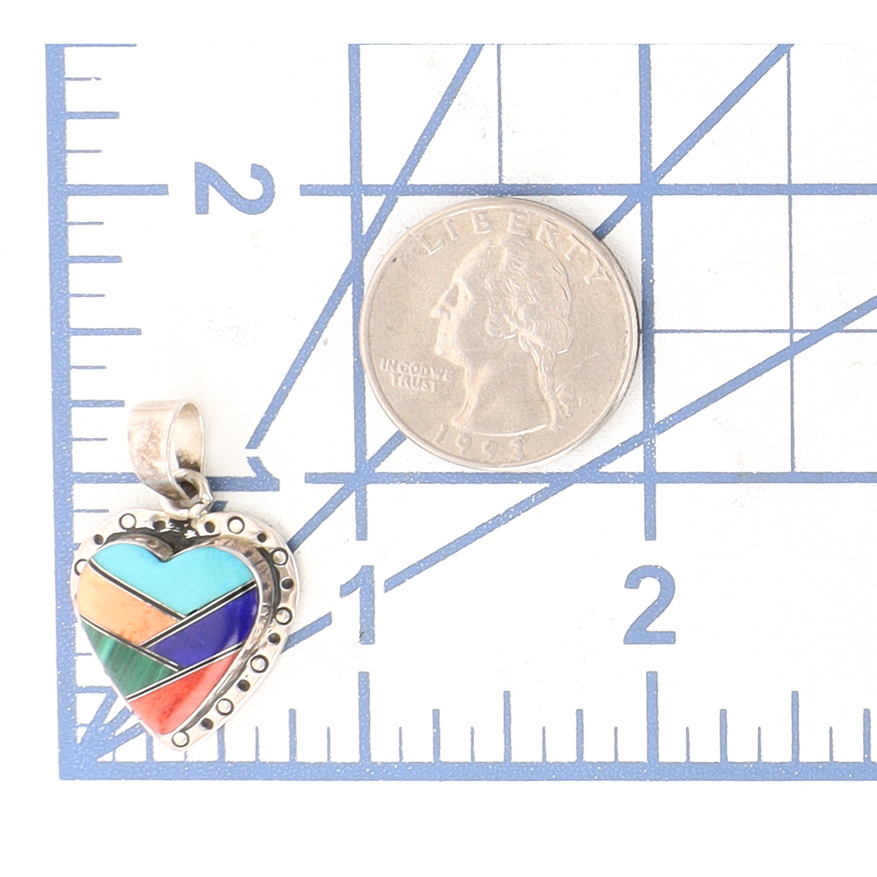 James Shay Navajo Sterling Multi Stone Inlay Heart Pendant 4.5g