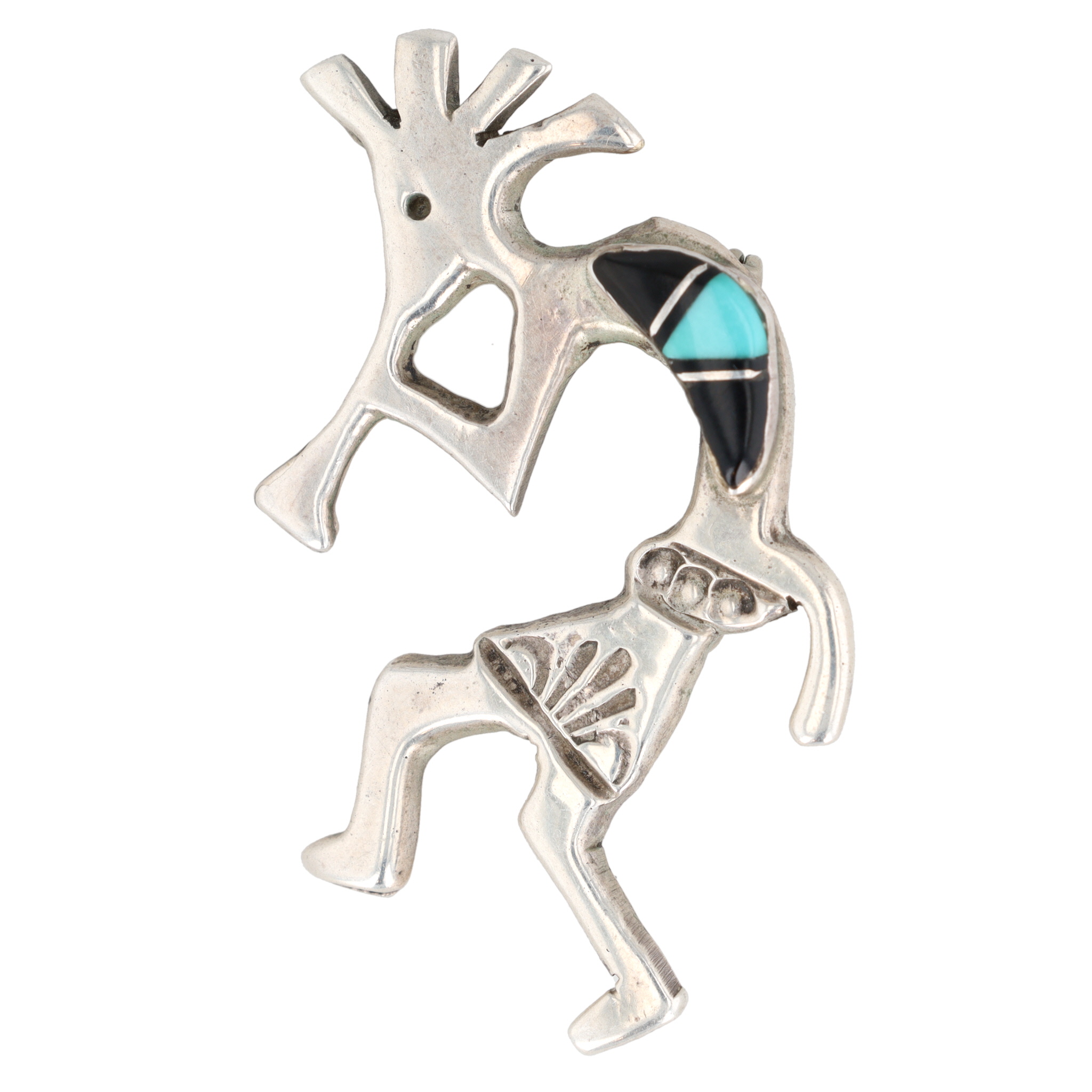 Melissa Yazzie Navajo Sterling Inlay Kokopelli Brooch Pendant 7g