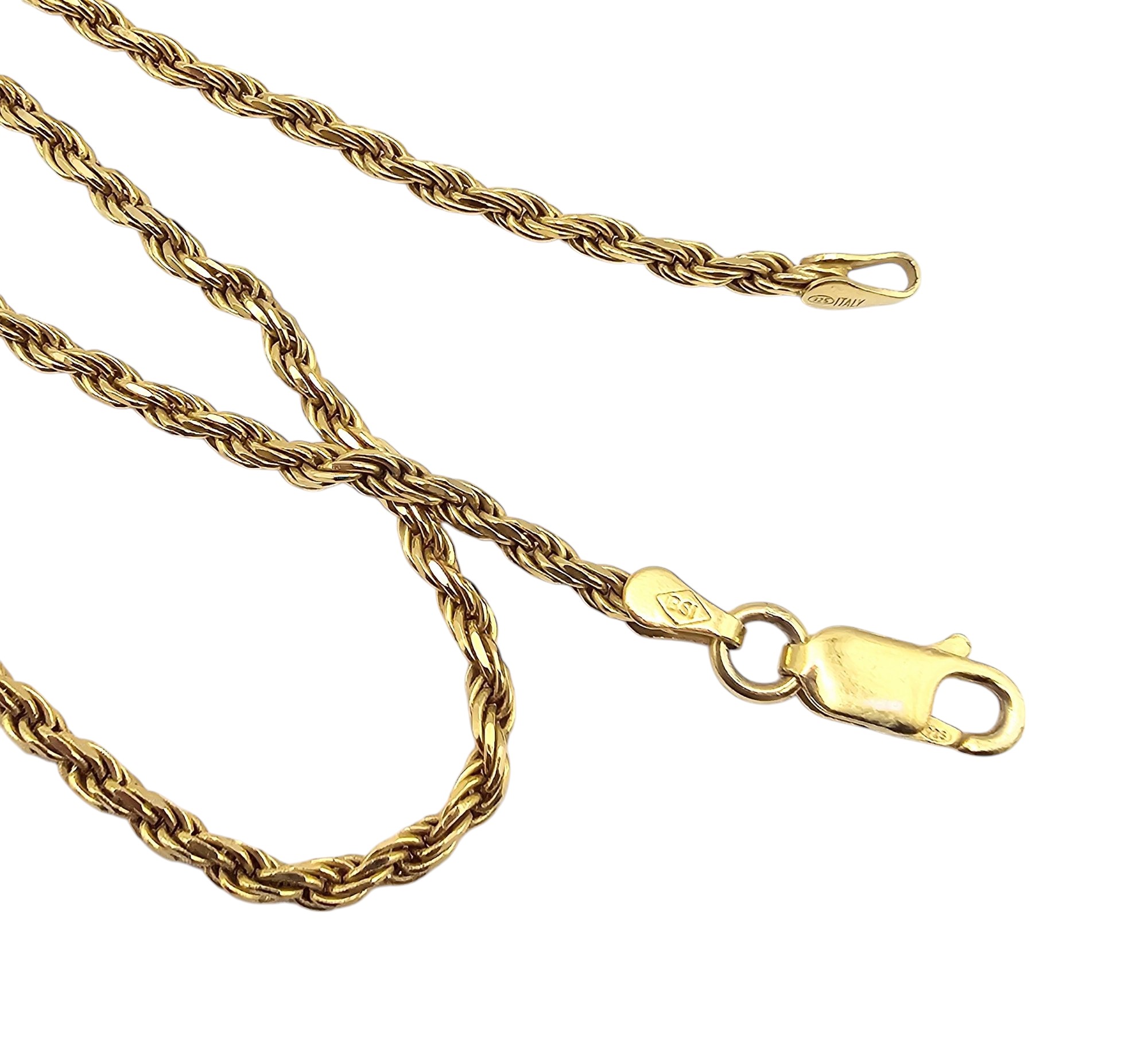 Italy Gold Over Sterling Silver Rope Chain Necklace 9.6 G