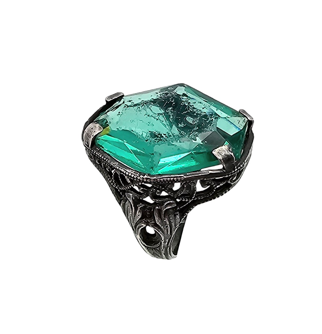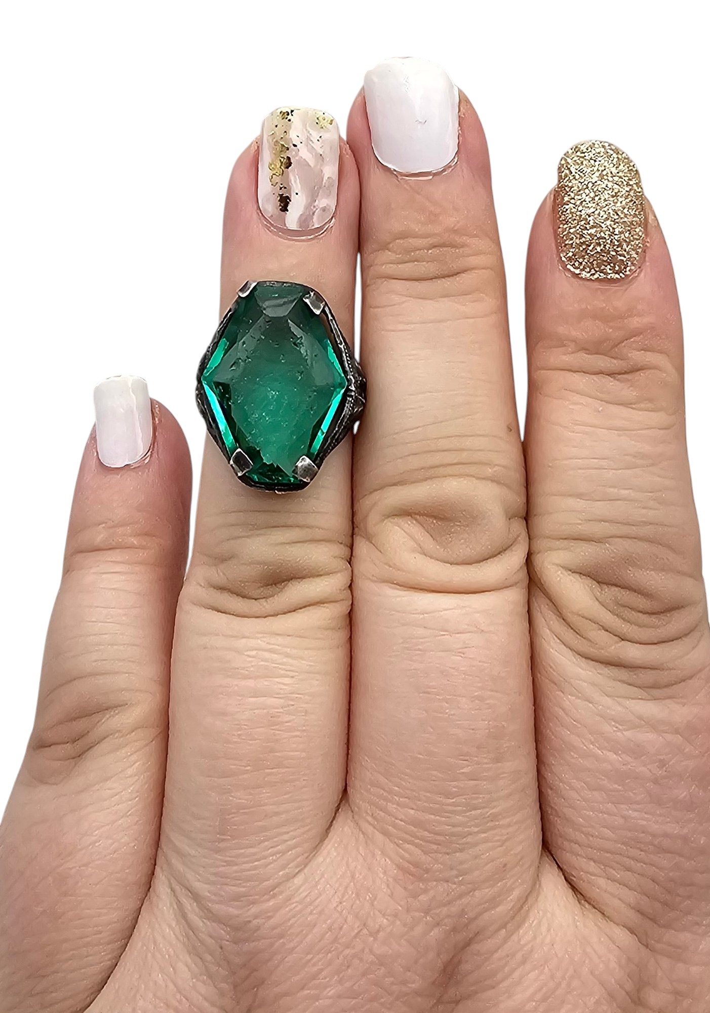 Rhinestone Sterling Silver Cocktail Ring Size 4.75 5.8 G