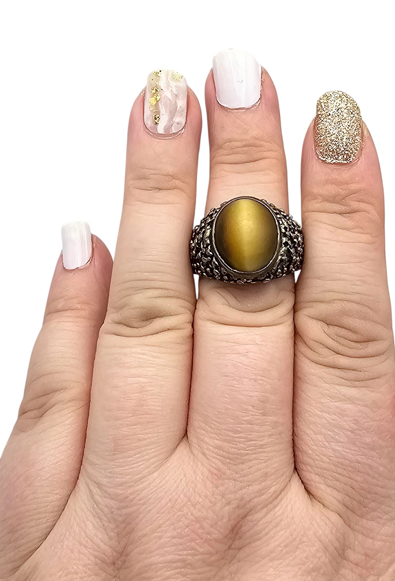 HG F Cat Eye Sterling Silver Ring Size 9.5 13 G
