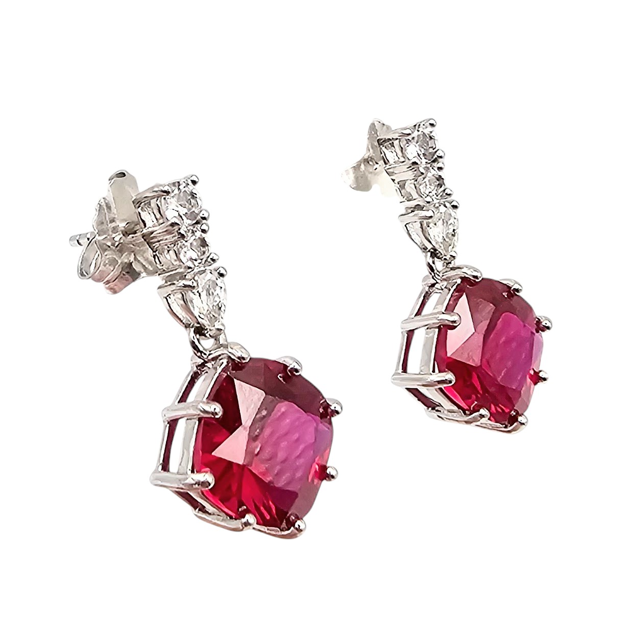 DK White Topaz Ruby Sterling Silver Drop Dangle Earrings 5.4 G