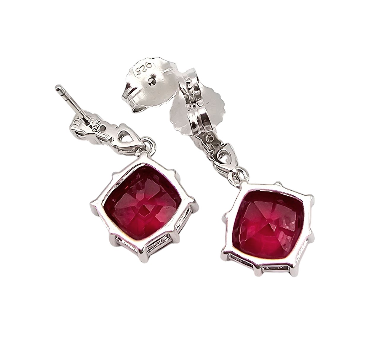 DK White Topaz Ruby Sterling Silver Dangle Earrings 5.4 G