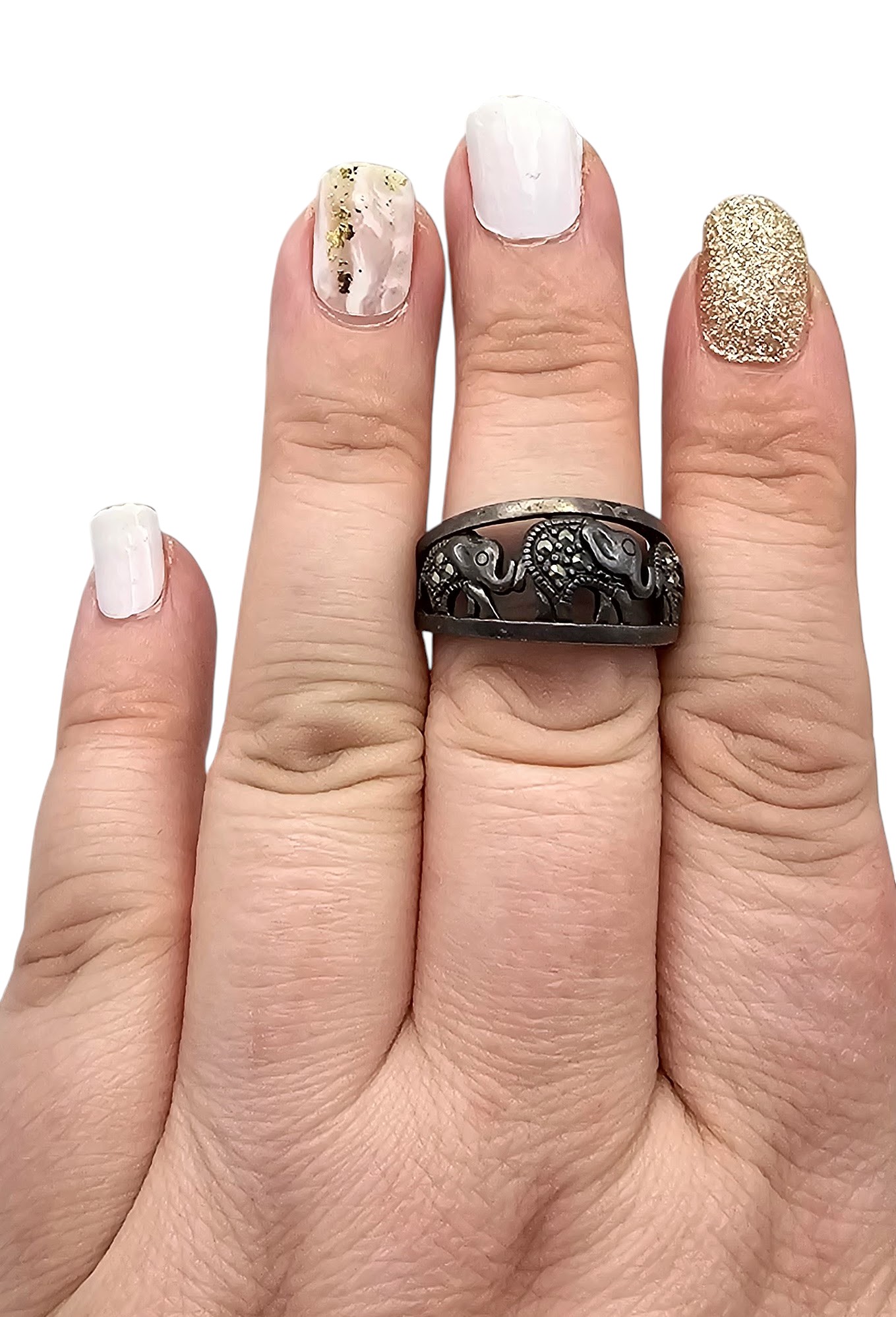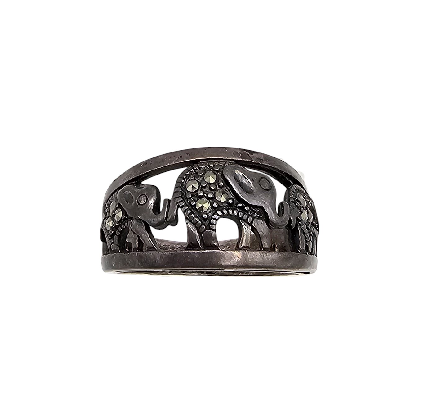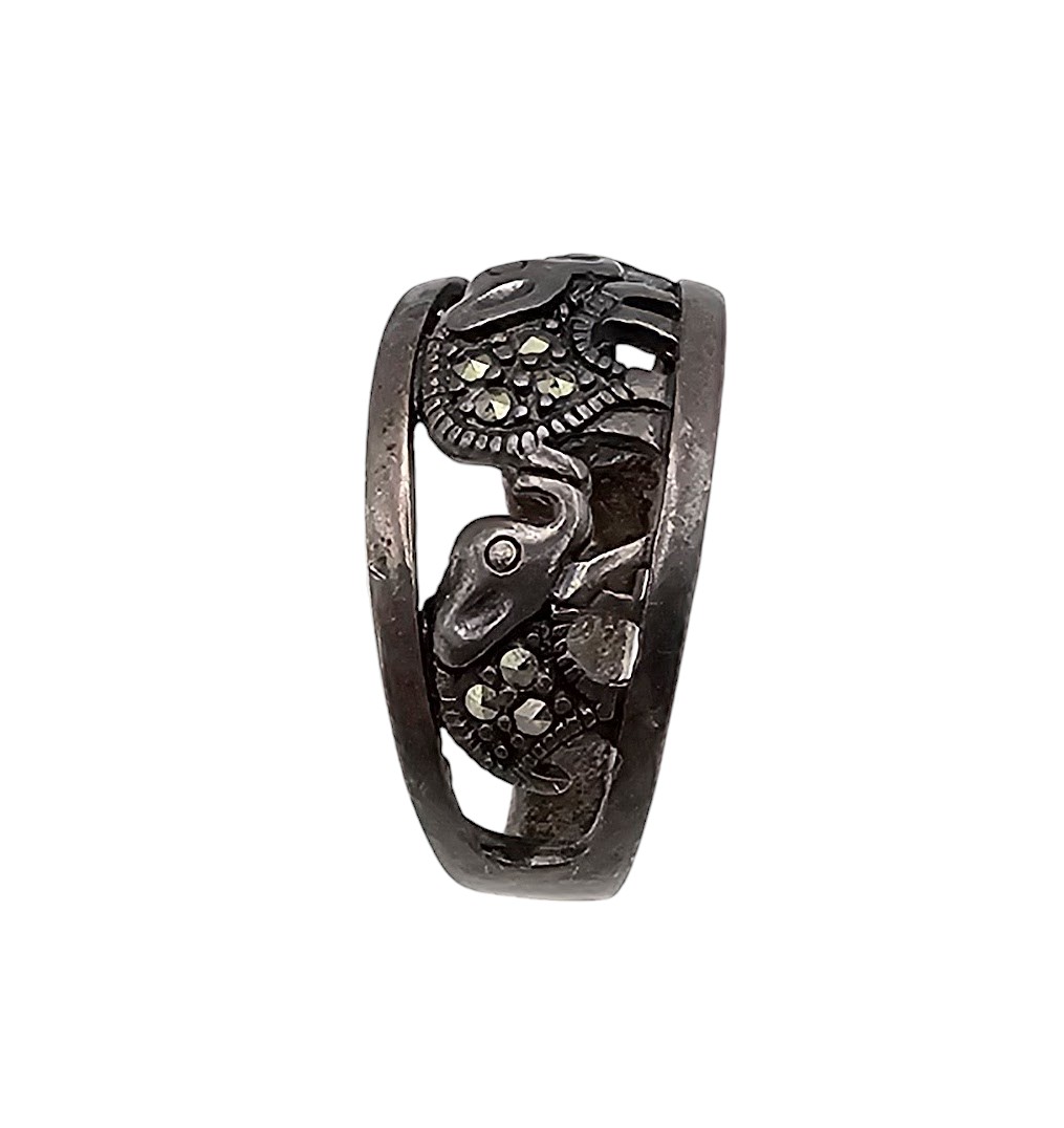 NV Marcasite Sterling Silver Elephant Ring Size 9 4.9 G